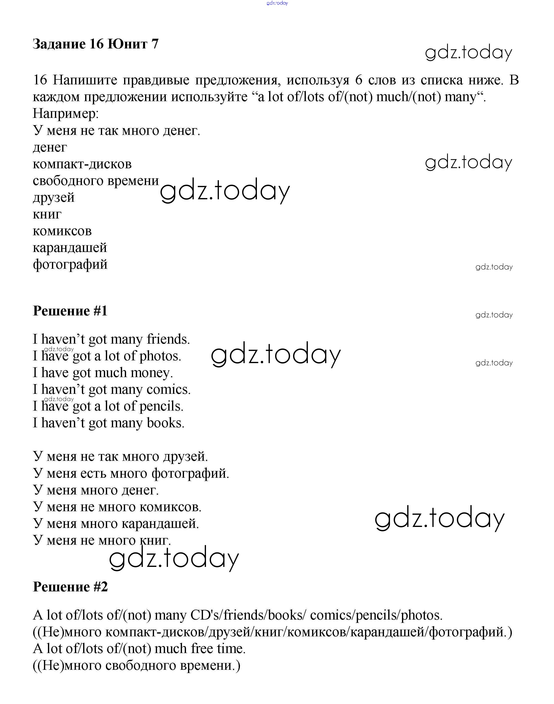 На страницах сайта gdz.today вы найдете учебный и вспомогательный материал, направленный на улучшения знаний школьной программы. ГДЗ - онлайн мир знаний Решение к Unit 7. Pocket money Часть 1 16 Учебнику по Английскому языку для 7 класса Вербицкая, Гаярделли Вентана-граф Forward 2017