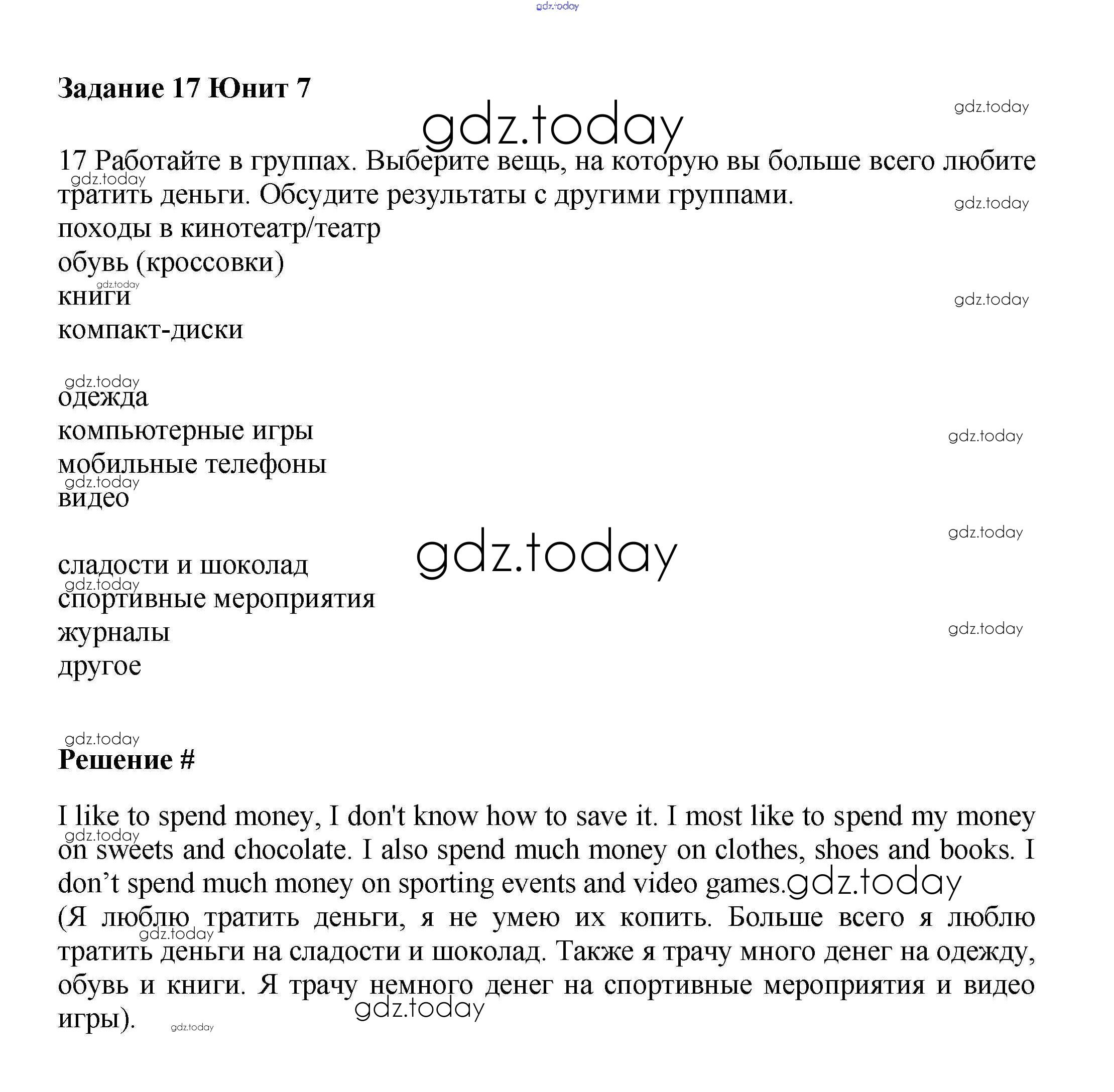 Ответы к Решение к Unit 7. Pocket money Часть 1 17 Учебнику по Английскому языку для 7 класса Вербицкая, Гаярделли Вентана-граф Forward 2017