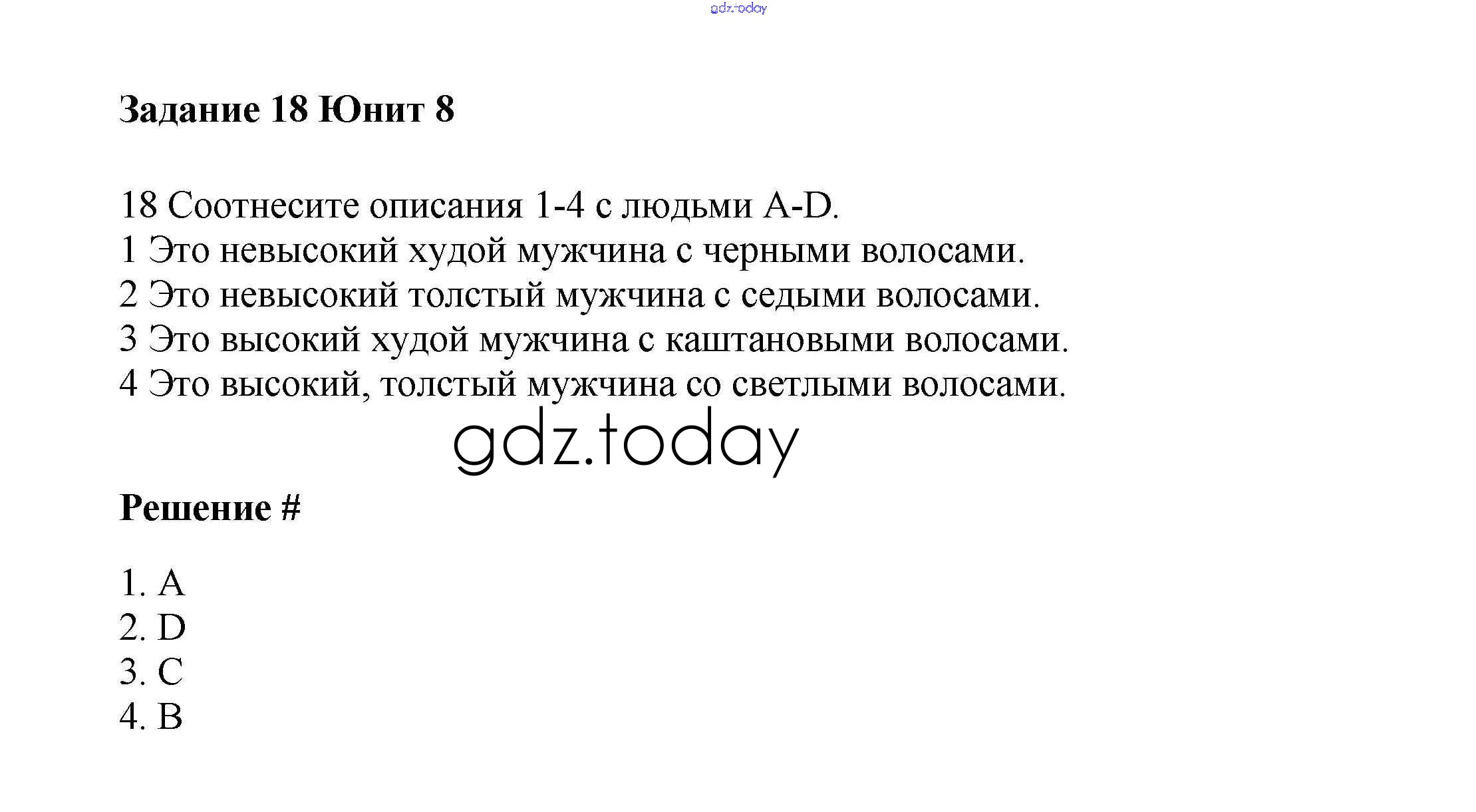 На страницах сайта gdz.today вы найдете учебный и вспомогательный материал, направленный на улучшения знаний школьной программы. ГДЗ - онлайн мир знаний Решение к Unit 8. Amazing mysteries Часть 1 18 Учебнику по Английскому языку для 7 класса Вербицкая, Гаярделли Вентана-граф Forward 2017
