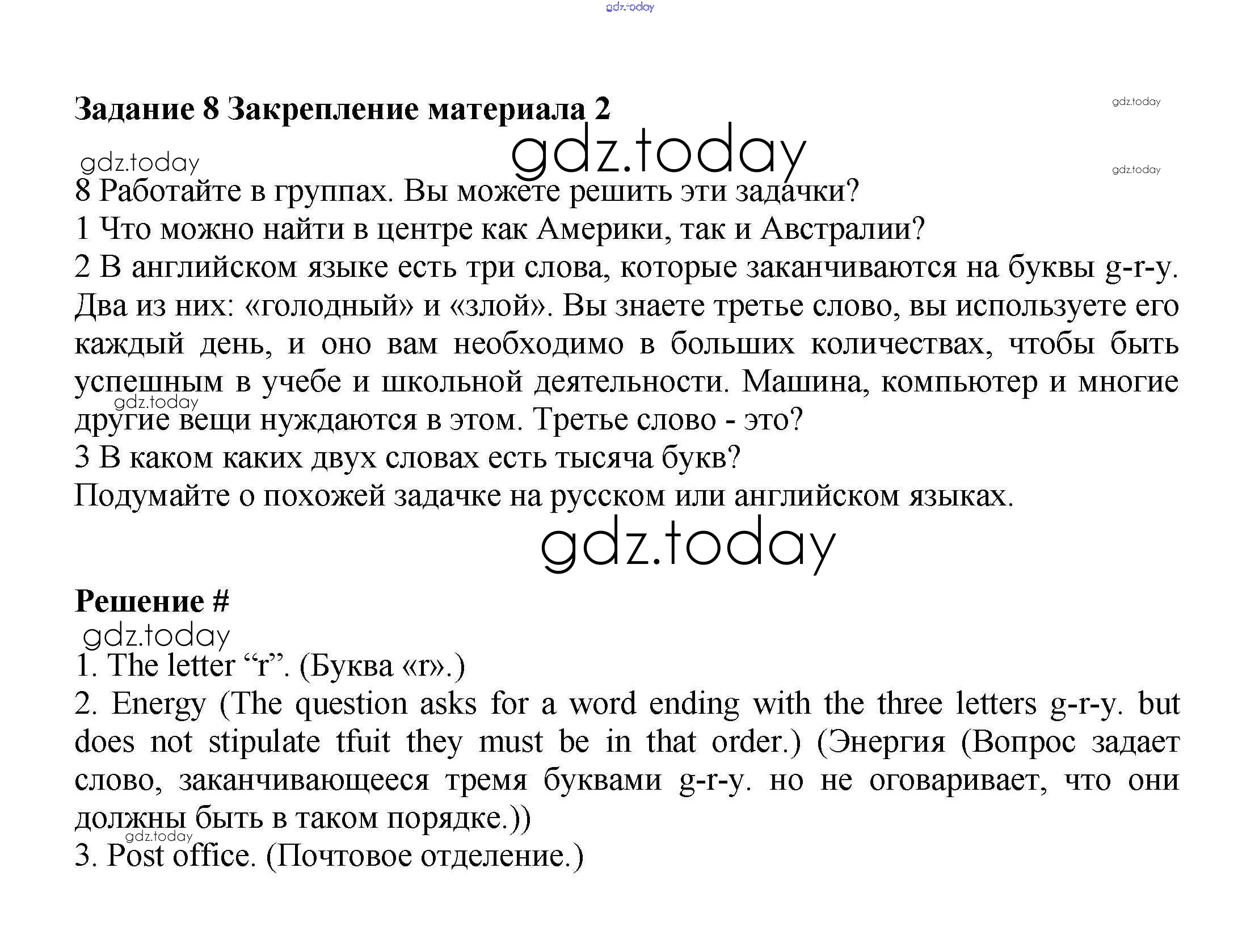 На страницах сайта gdz.today вы найдете учебный и вспомогательный материал, направленный на улучшения знаний школьной программы. ГДЗ - онлайн мир знаний Решение к Consolidation 2 Часть 1 8 Учебнику по Английскому языку для 7 класса Вербицкая, Гаярделли Вентана-граф Forward 2017