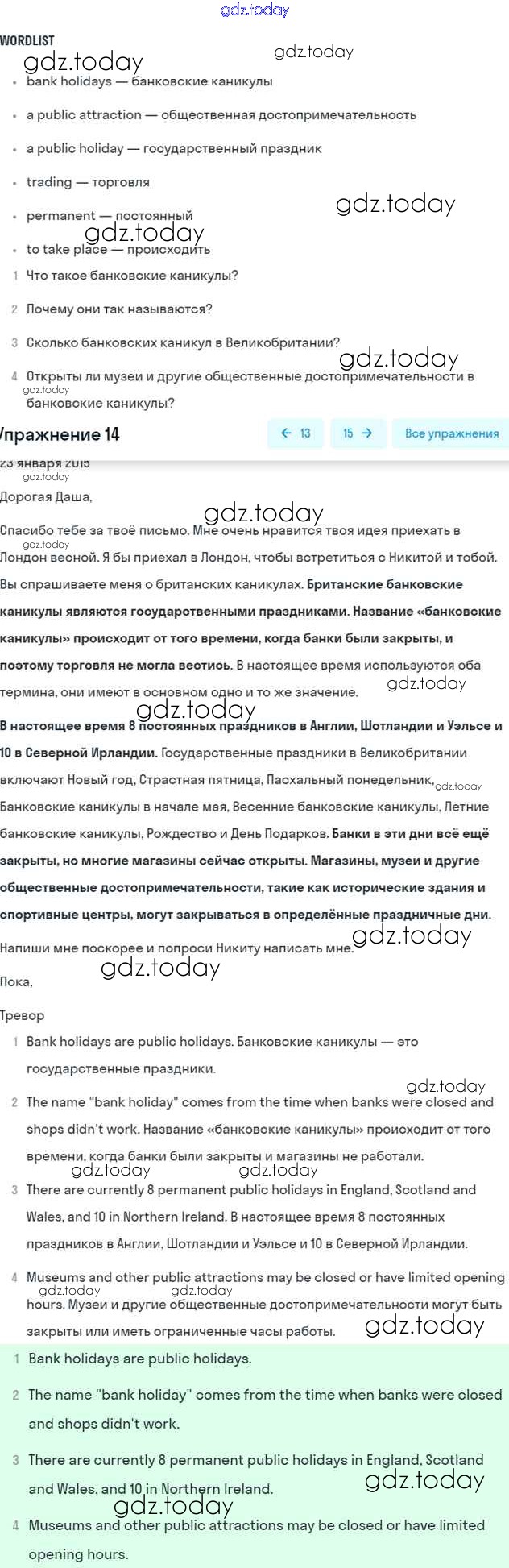 На страницах сайта gdz.today вы найдете учебный и вспомогательный материал, направленный на улучшения знаний школьной программы. ГДЗ - онлайн мир знаний Решение к Unit 9. Free time Часть 2 14 Учебнику по Английскому языку для 7 класса Вербицкая, Гаярделли Вентана-граф Forward 2017