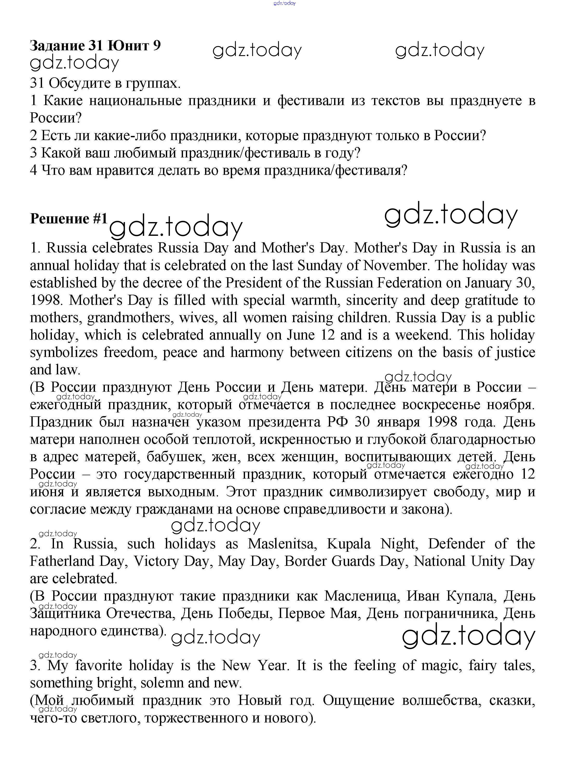Ответы к Решение к Unit 9. Free time Часть 2 31 Учебнику по Английскому языку для 7 класса Вербицкая, Гаярделли Вентана-граф Forward 2017