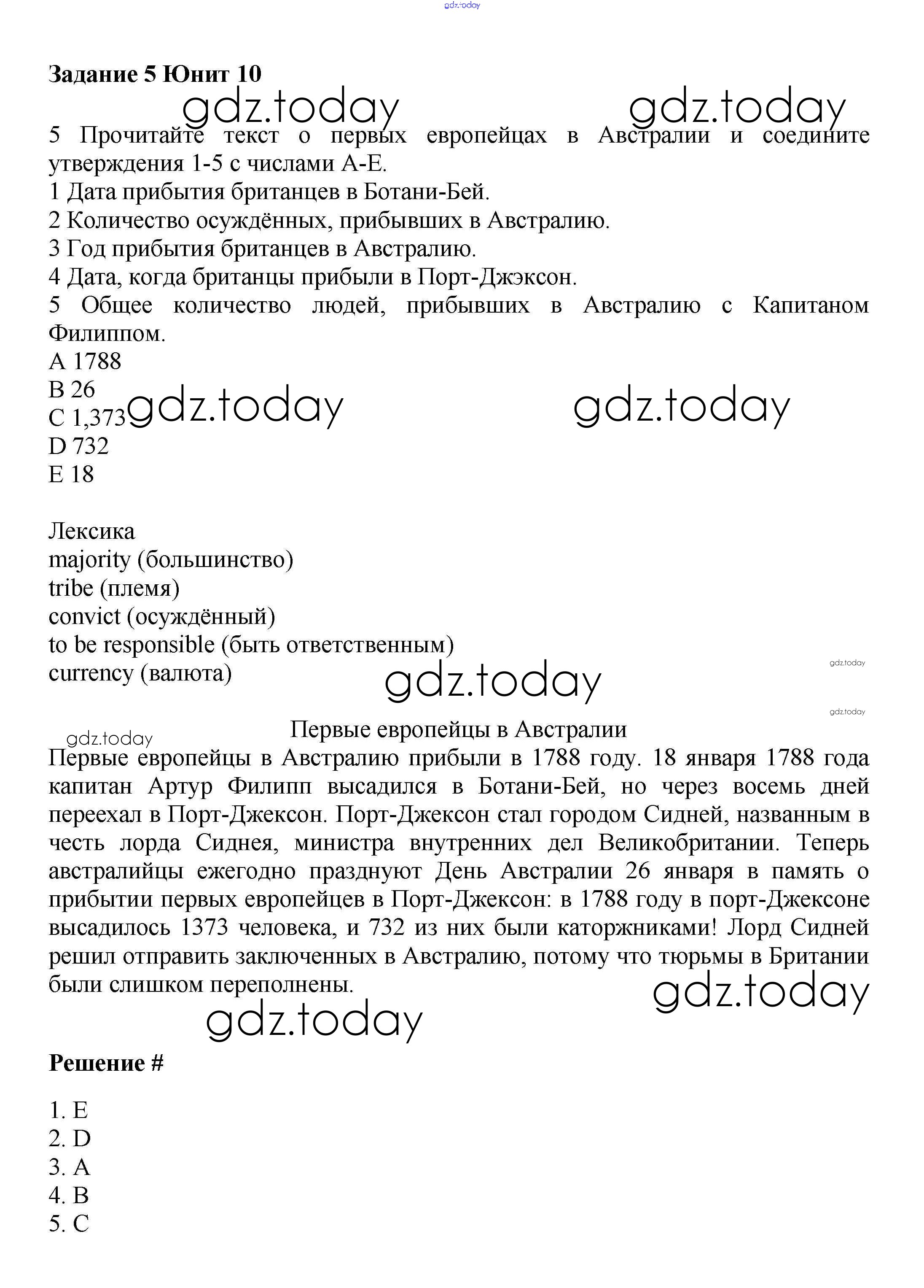 На страницах сайта gdz.today вы найдете учебный и вспомогательный материал, направленный на улучшения знаний школьной программы. ГДЗ - онлайн мир знаний Решение к Unit 10. Discovering Australia Часть 2 5 Учебнику по Английскому языку для 7 класса Вербицкая, Гаярделли Вентана-граф Forward 2017