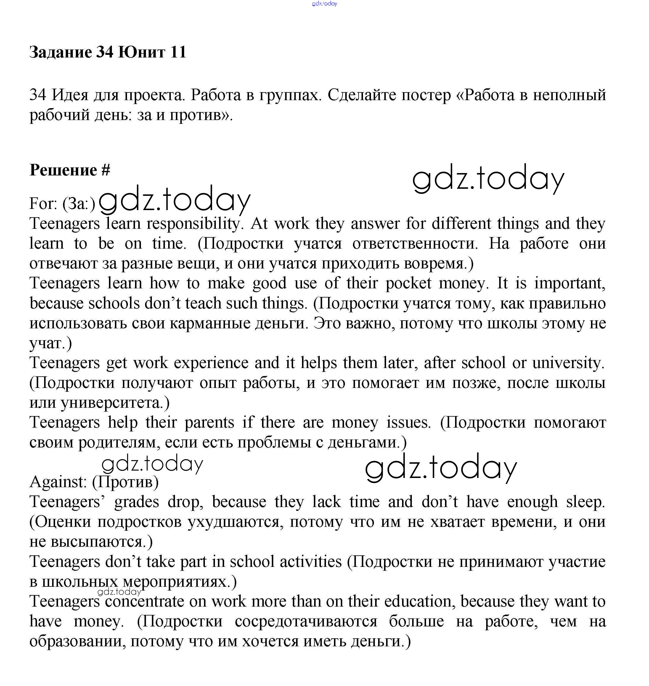 Ответы к Решение к Unit 11. Work experience Часть 2 34 Учебнику по Английскому языку для 7 класса Вербицкая, Гаярделли Вентана-граф Forward 2017