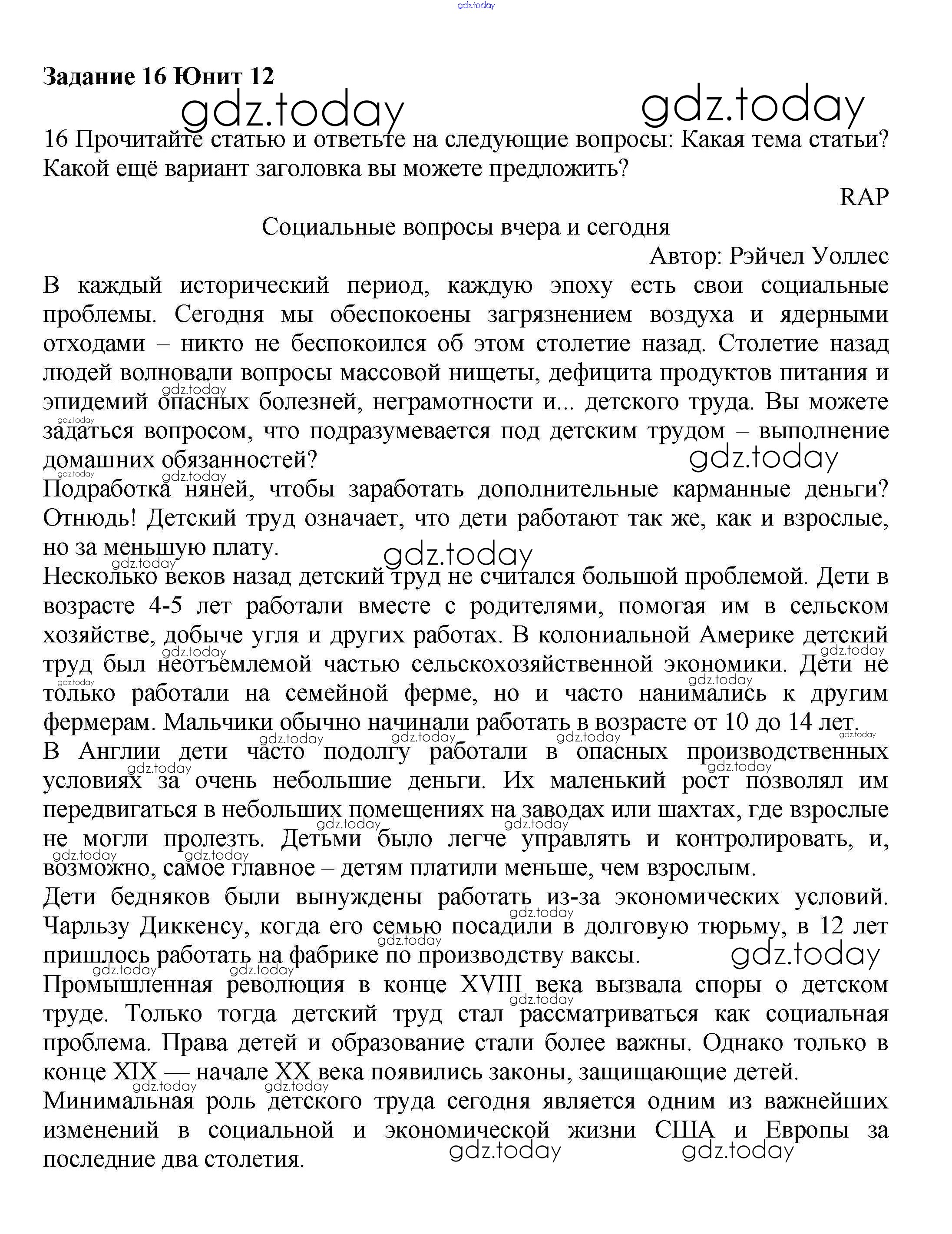 На страницах сайта gdz.today вы найдете учебный и вспомогательный материал, направленный на улучшения знаний школьной программы. ГДЗ - онлайн мир знаний Решение к Unit 12. Social issues Часть 2 16 Учебнику по Английскому языку для 7 класса Вербицкая, Гаярделли Вентана-граф Forward 2017