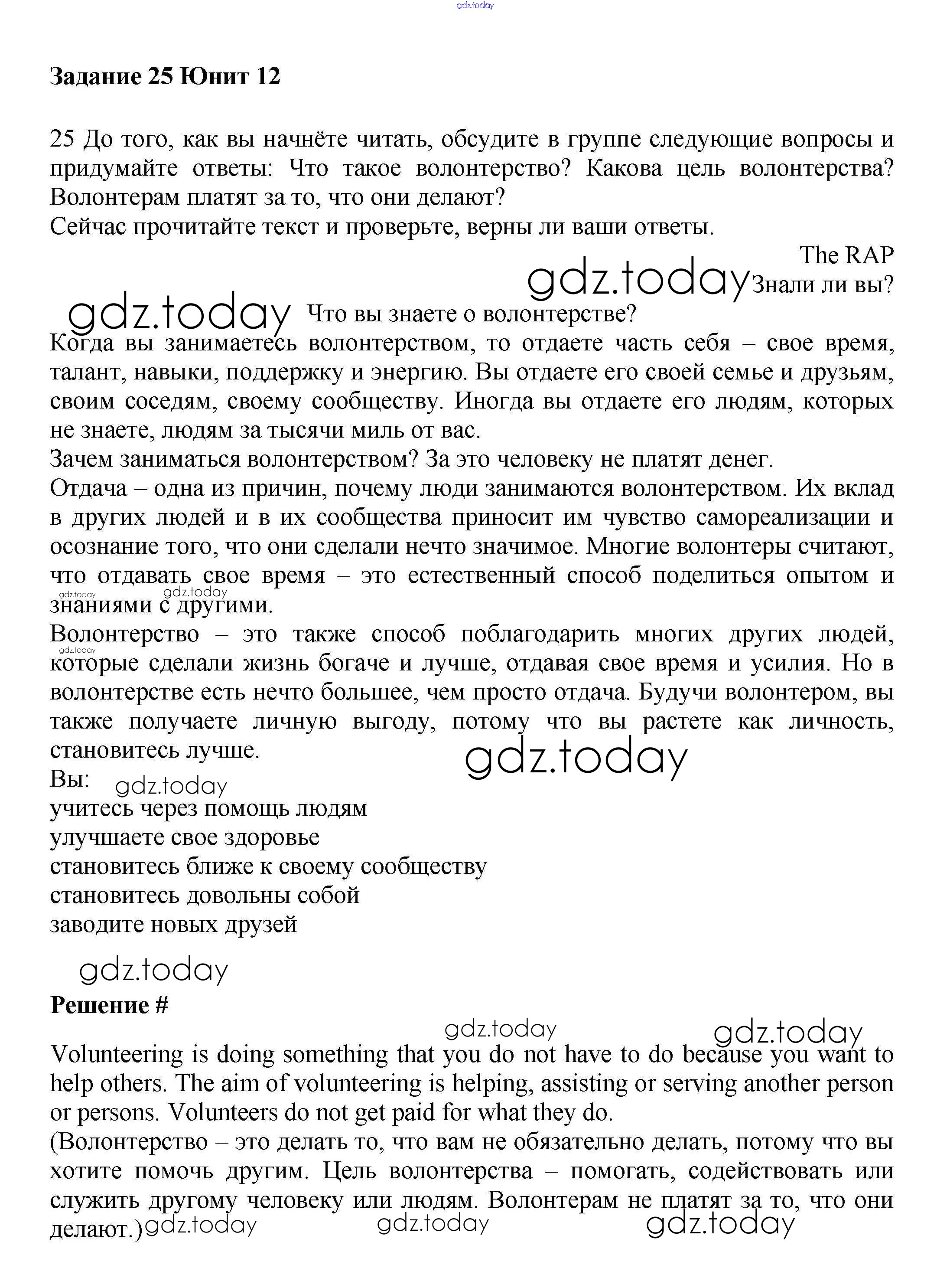 На страницах сайта gdz.today вы найдете учебный и вспомогательный материал, направленный на улучшения знаний школьной программы. ГДЗ - онлайн мир знаний Решение к Unit 12. Social issues Часть 2 25 Учебнику по Английскому языку для 7 класса Вербицкая, Гаярделли Вентана-граф Forward 2017