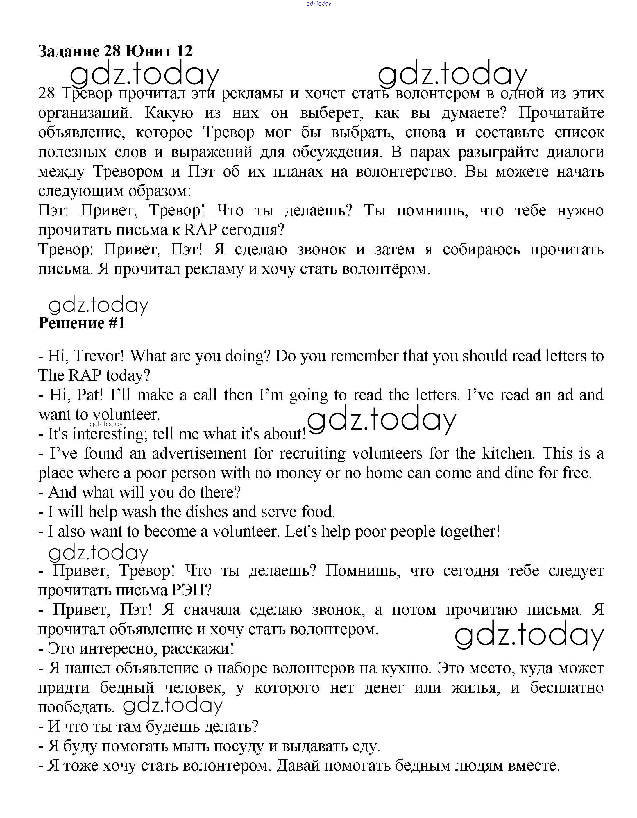 На страницах сайта gdz.today вы найдете учебный и вспомогательный материал, направленный на улучшения знаний школьной программы. ГДЗ - онлайн мир знаний Решение к Unit 12. Social issues Часть 2 28 Учебнику по Английскому языку для 7 класса Вербицкая, Гаярделли Вентана-граф Forward 2017