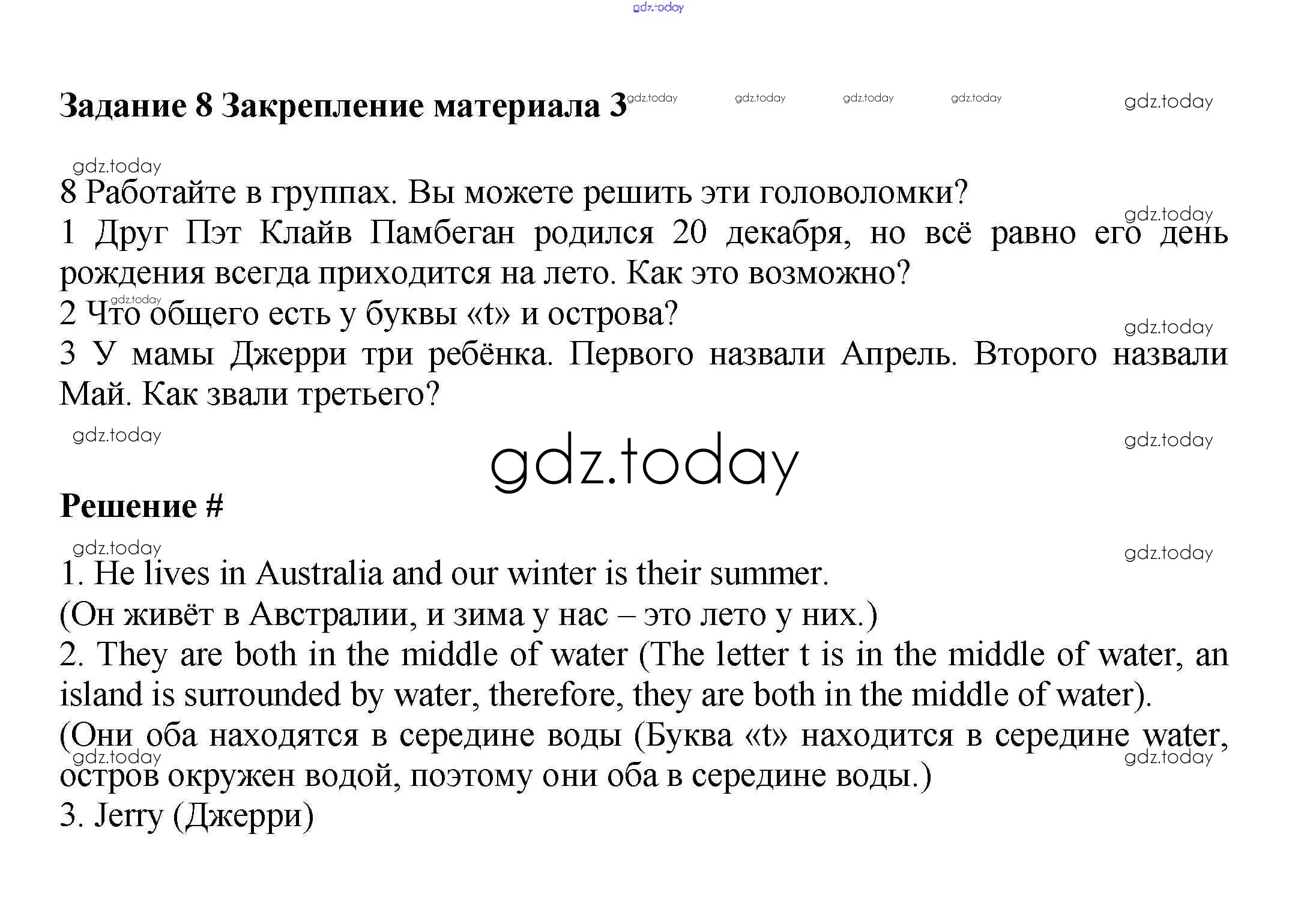 На страницах сайта gdz.today вы найдете учебный и вспомогательный материал, направленный на улучшения знаний школьной программы. ГДЗ - онлайн мир знаний Решение к Consolidation 3 Часть 2 8 Учебнику по Английскому языку для 7 класса Вербицкая, Гаярделли Вентана-граф Forward 2017