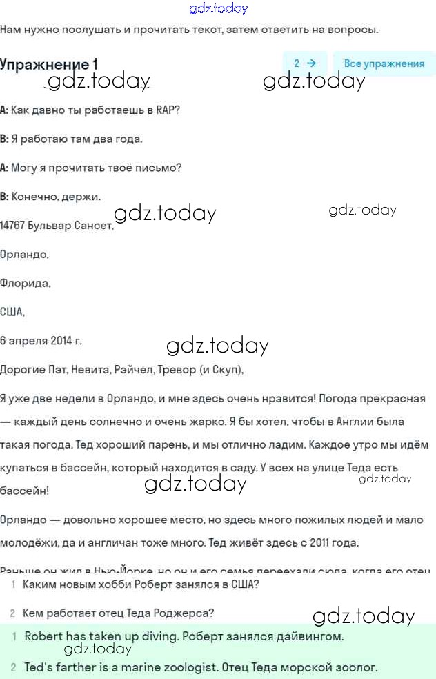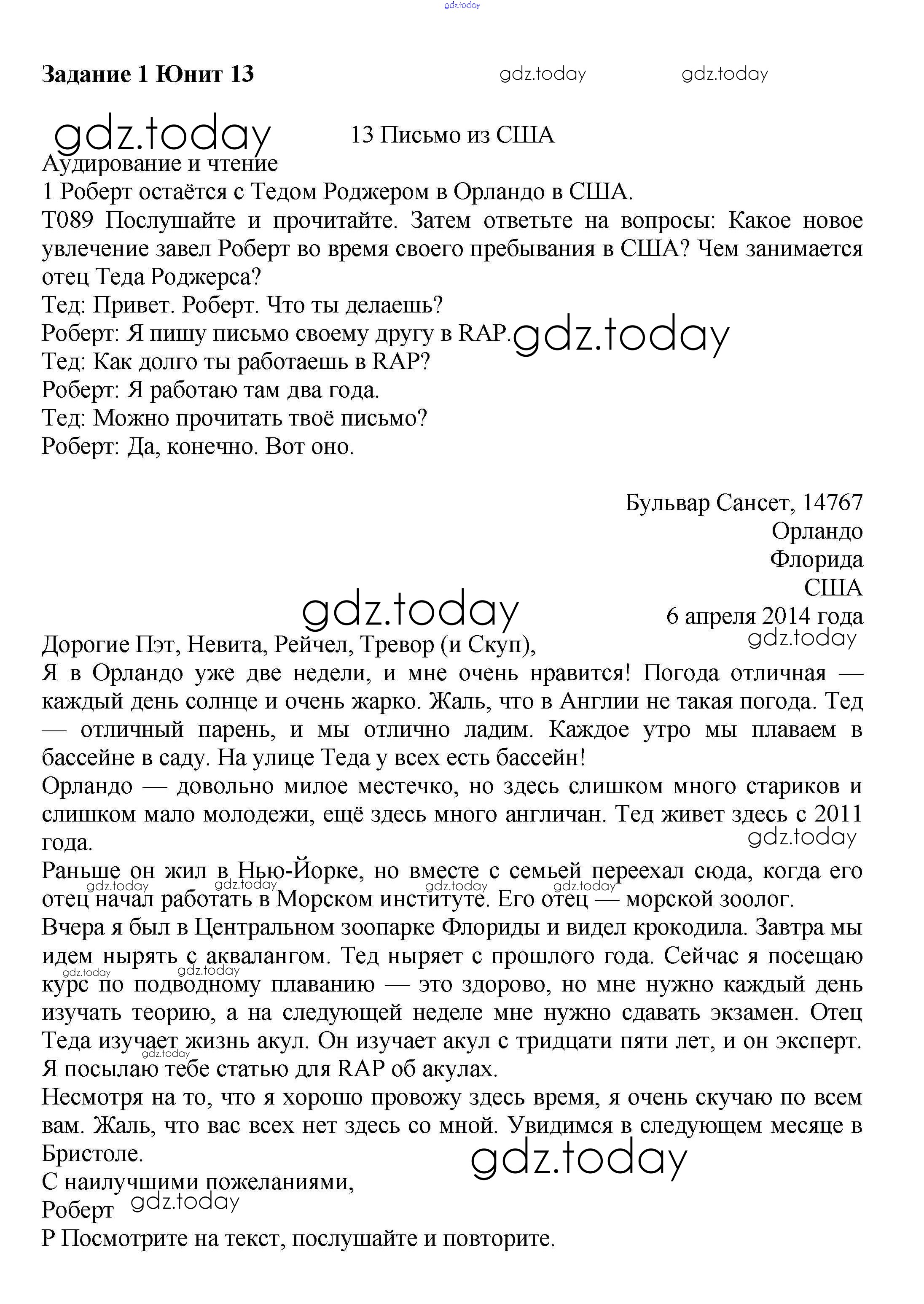 На страницах сайта gdz.today вы найдете учебный и вспомогательный материал, направленный на улучшения знаний школьной программы. ГДЗ - онлайн мир знаний Решение к Unit 13. A letter from the USA Часть 2 1 Учебнику по Английскому языку для 7 класса Вербицкая, Гаярделли Вентана-граф Forward 2017