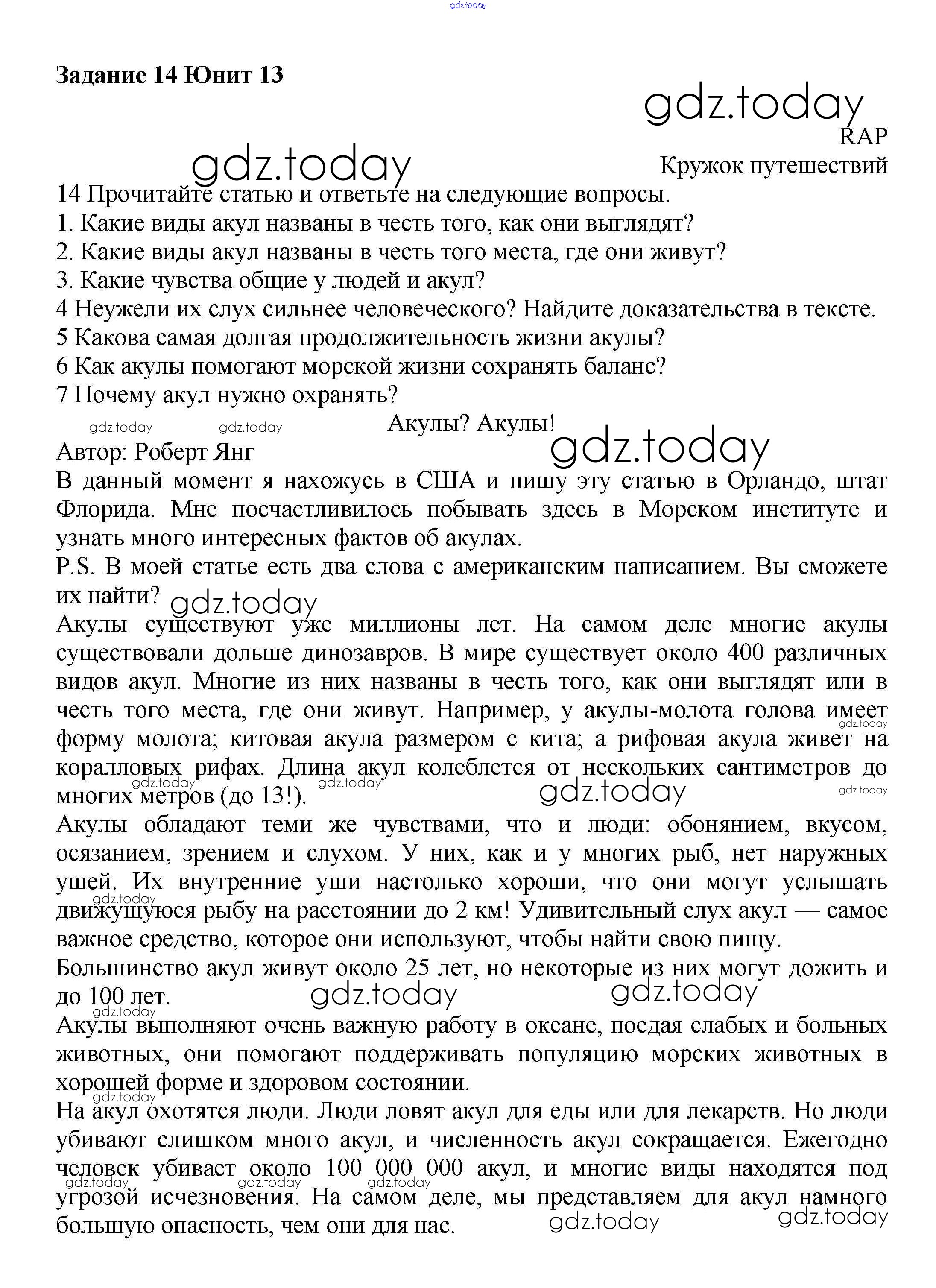 На страницах сайта gdz.today вы найдете учебный и вспомогательный материал, направленный на улучшения знаний школьной программы. ГДЗ - онлайн мир знаний Решение к Unit 13. A letter from the USA Часть 2 14 Учебнику по Английскому языку для 7 класса Вербицкая, Гаярделли Вентана-граф Forward 2017