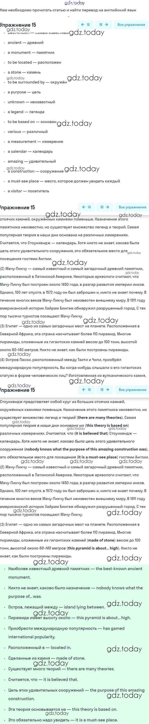 На страницах сайта gdz.today вы найдете учебный и вспомогательный материал, направленный на улучшения знаний школьной программы. ГДЗ - онлайн мир знаний Решение к Unit 14. World wise Часть 2 15 Учебнику по Английскому языку для 7 класса Вербицкая, Гаярделли Вентана-граф Forward 2017