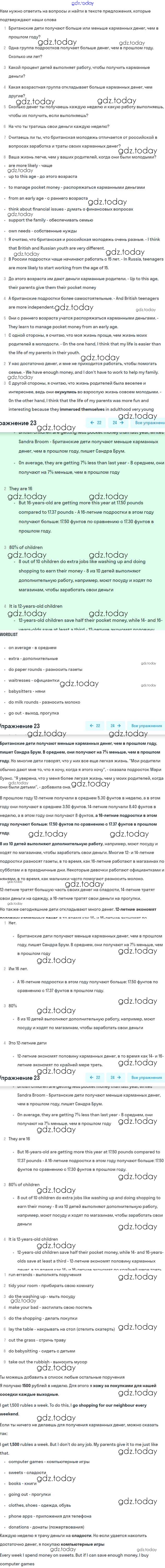 На страницах сайта gdz.today вы найдете учебный и вспомогательный материал, направленный на улучшения знаний школьной программы. ГДЗ - онлайн мир знаний Решение к Unit 7. Pocket money Часть 1 23 Учебнику по Английскому языку для 7 класса Вербицкая, Гаярделли Вентана-граф Forward 2017