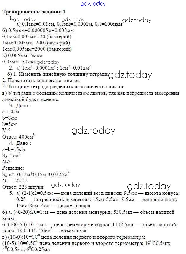 Ответы к Решение к тренировочным заданияи Задание №1. Измерение физических величин. Точность и погрешность измерений Дидактическим материалам по Физике для 7 класса Марон Дрофа Вертикаль 2019
