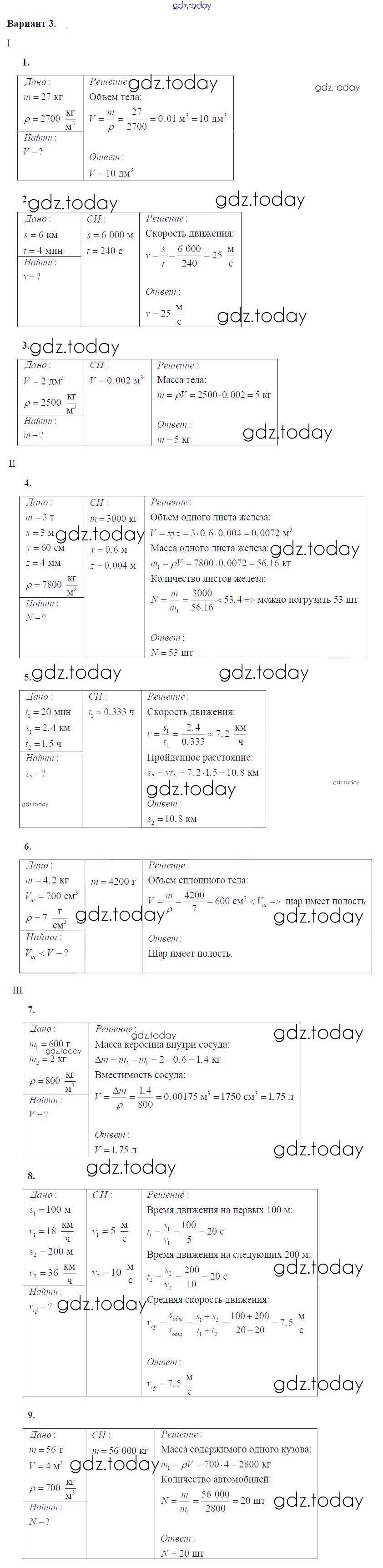 Ответы к КР №-1. Механическое движение. Плотность вещества Решение к контрольным работам Вариант №3 Дидактическим материалам по Физике для 7 класса Марон Дрофа Вертикаль 2019