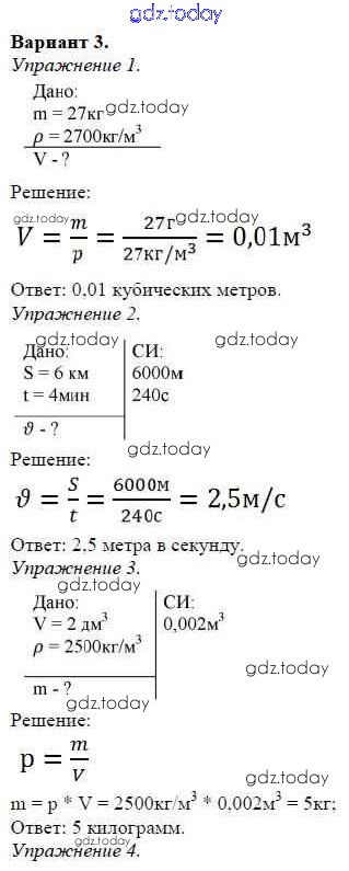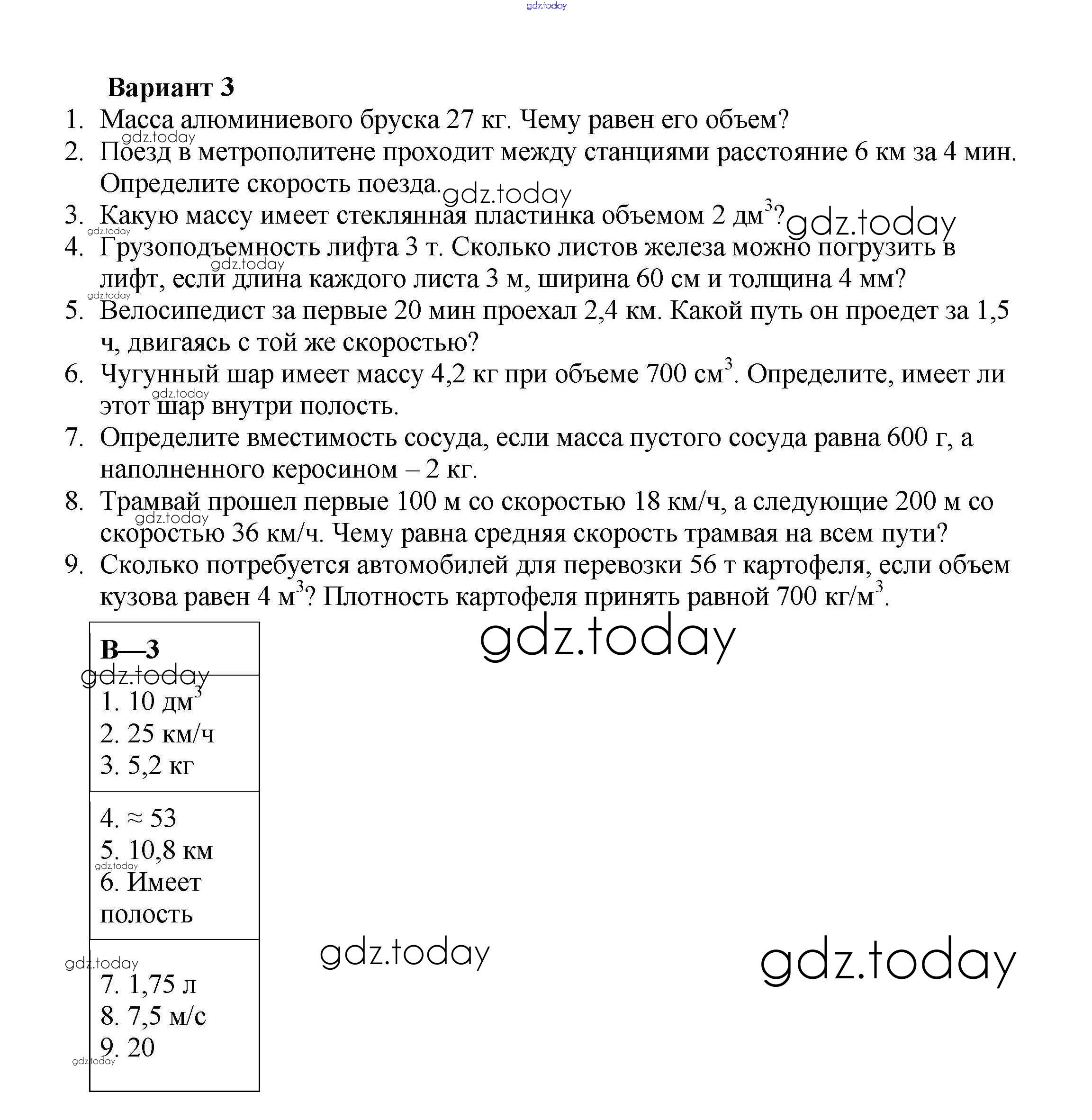 На страницах сайта gdz.today вы найдете учебный и вспомогательный материал, направленный на улучшения знаний школьной программы. ГДЗ - онлайн мир знаний КР №-1. Механическое движение. Плотность вещества Решение к контрольным работам Вариант №3 Дидактическим материалам по Физике для 7 класса Марон Дрофа Вертикаль 2019