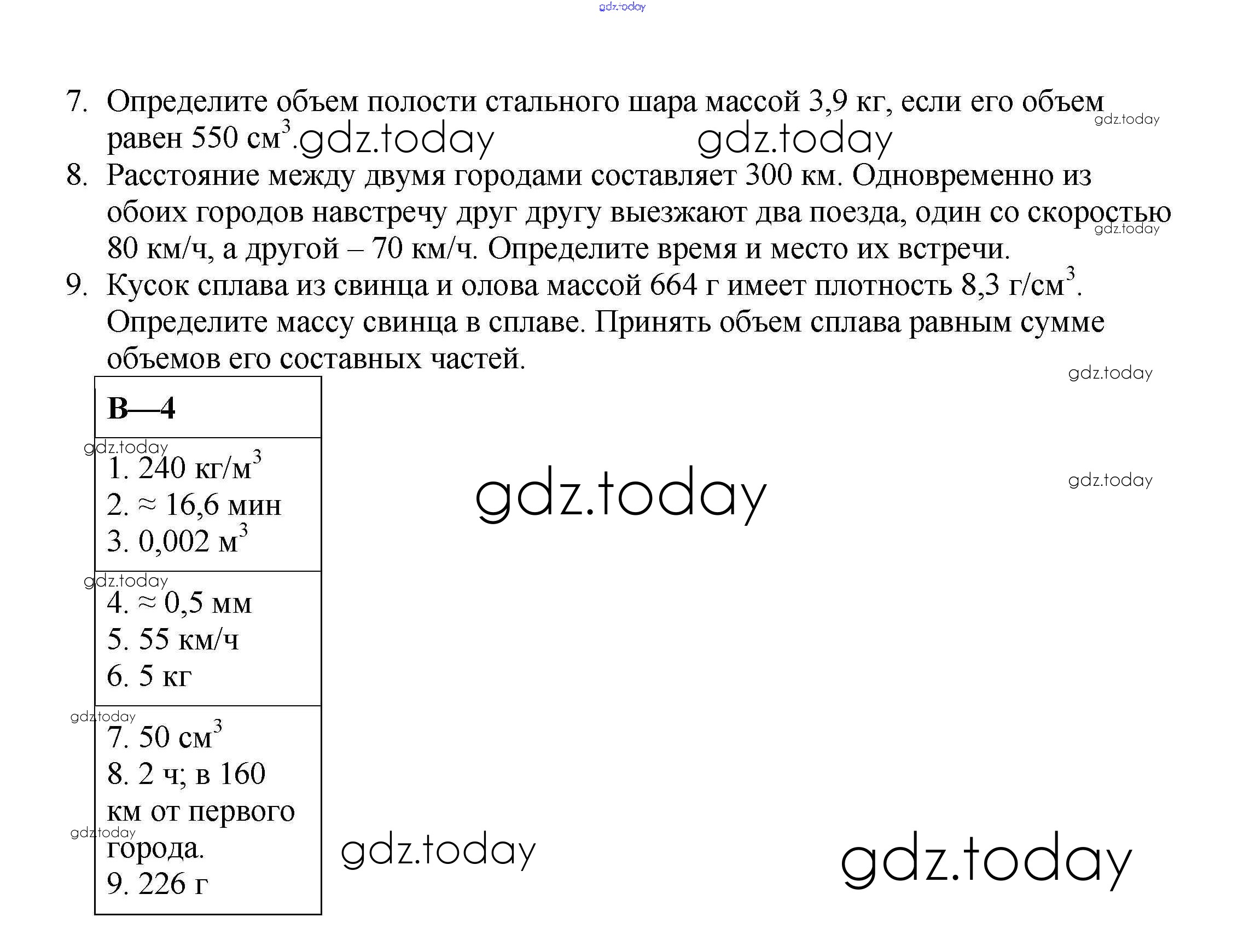 Ответы к КР №-1. Механическое движение. Плотность вещества Решение к контрольным работам Вариант №4 Дидактическим материалам по Физике для 7 класса Марон Дрофа Вертикаль 2019
