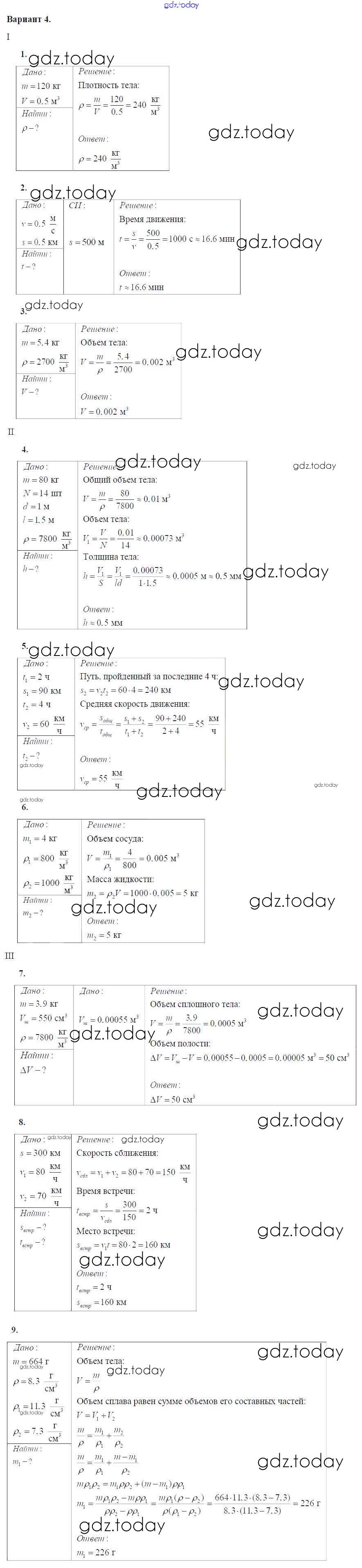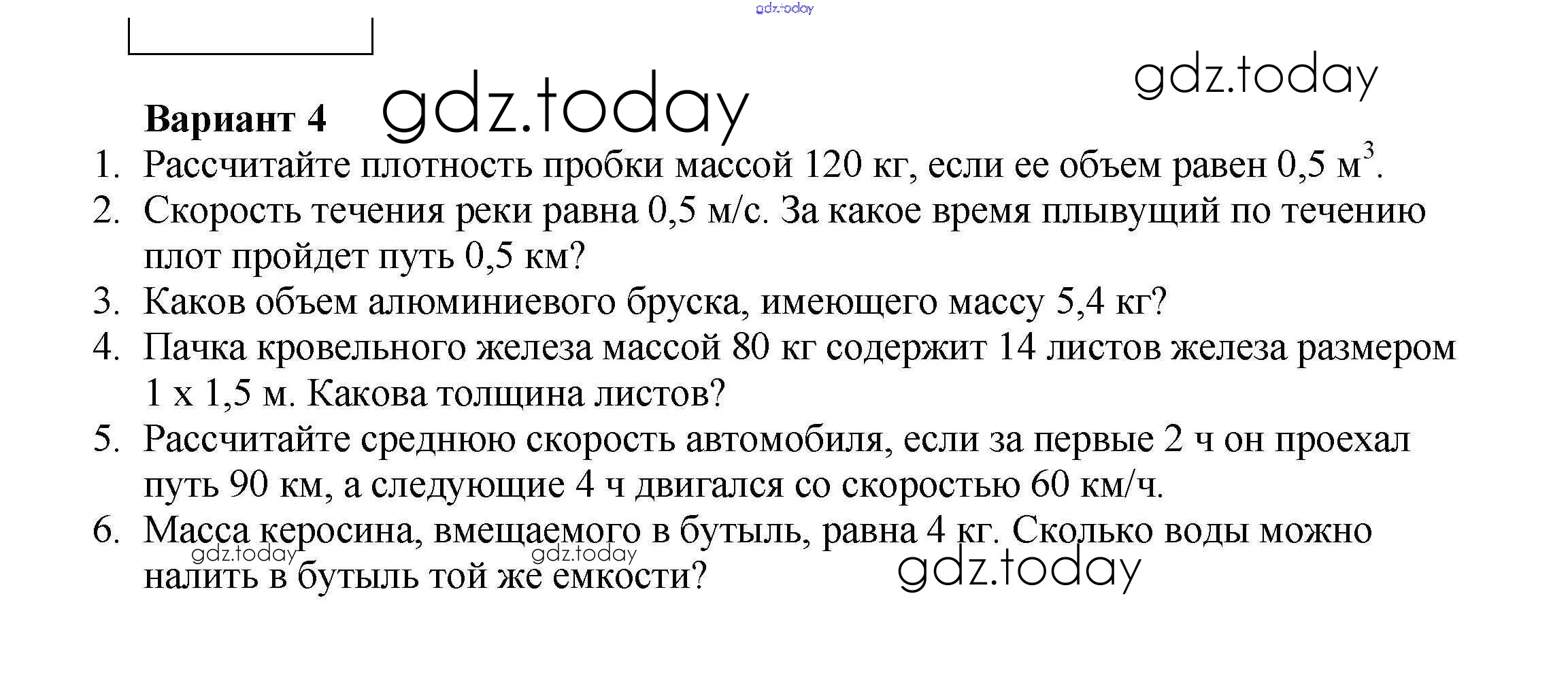 На страницах сайта gdz.today вы найдете учебный и вспомогательный материал, направленный на улучшения знаний школьной программы. ГДЗ - онлайн мир знаний КР №-1. Механическое движение. Плотность вещества Решение к контрольным работам Вариант №4 Дидактическим материалам по Физике для 7 класса Марон Дрофа Вертикаль 2019