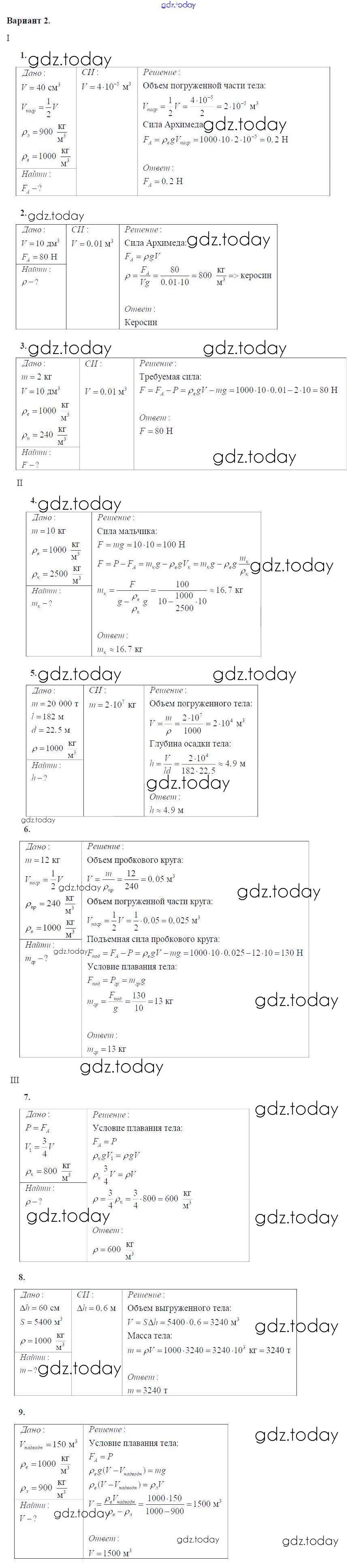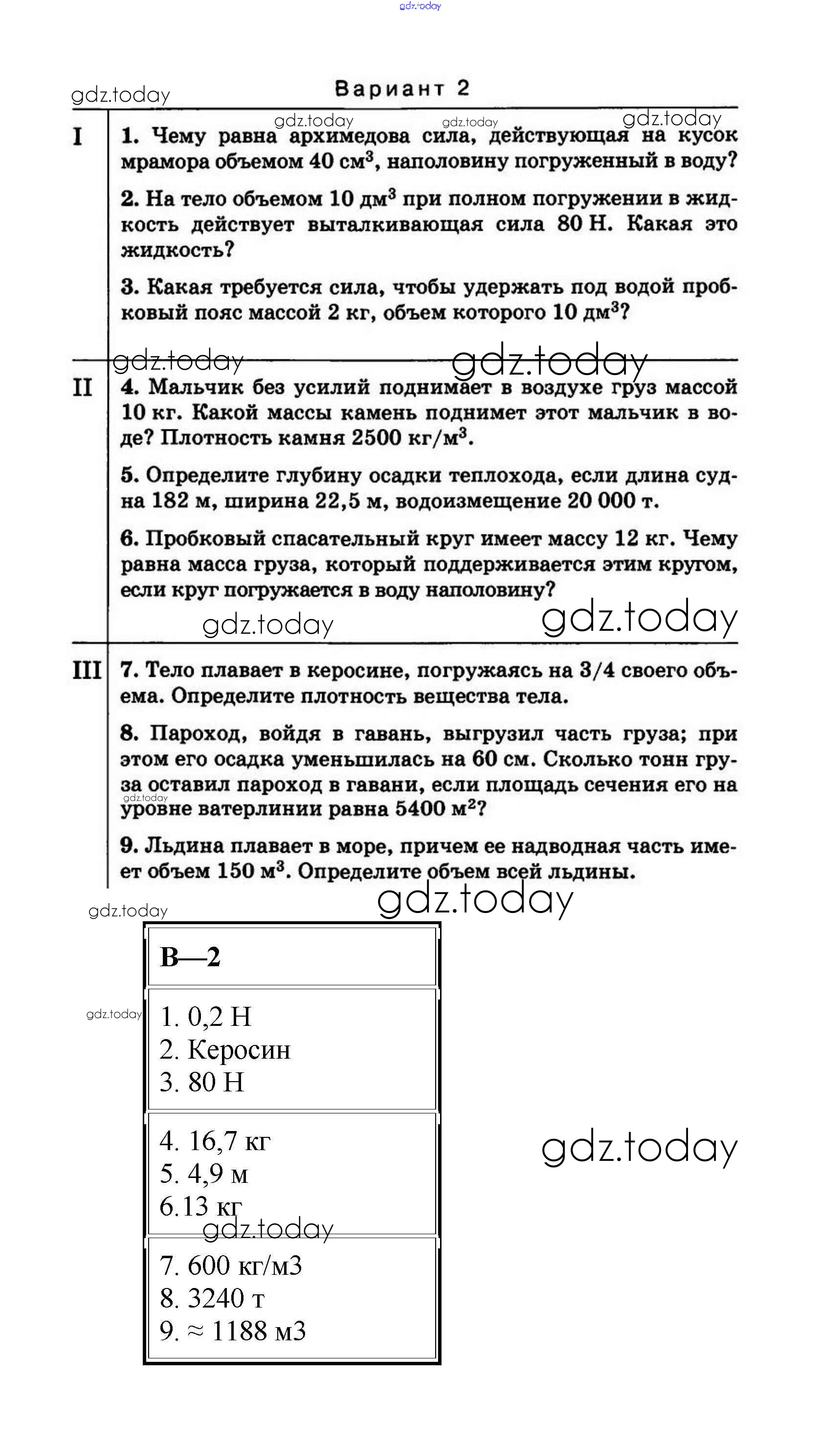 На страницах сайта gdz.today вы найдете учебный и вспомогательный материал, направленный на улучшения знаний школьной программы. ГДЗ - онлайн мир знаний КР №-3. Архимедова сила Решение к контрольным работам Вариант №2 Дидактическим материалам по Физике для 7 класса Марон Дрофа Вертикаль 2019