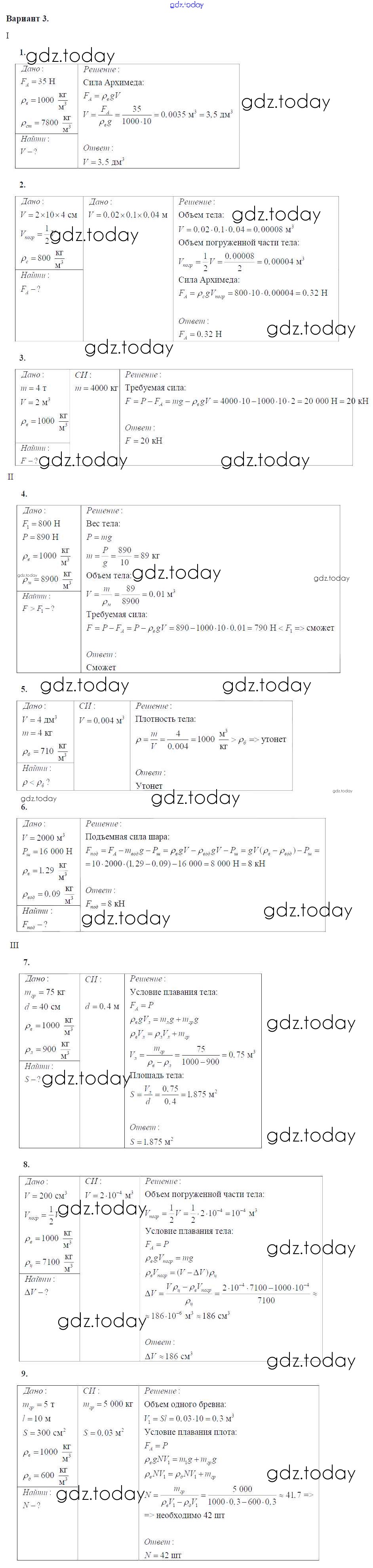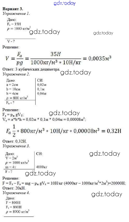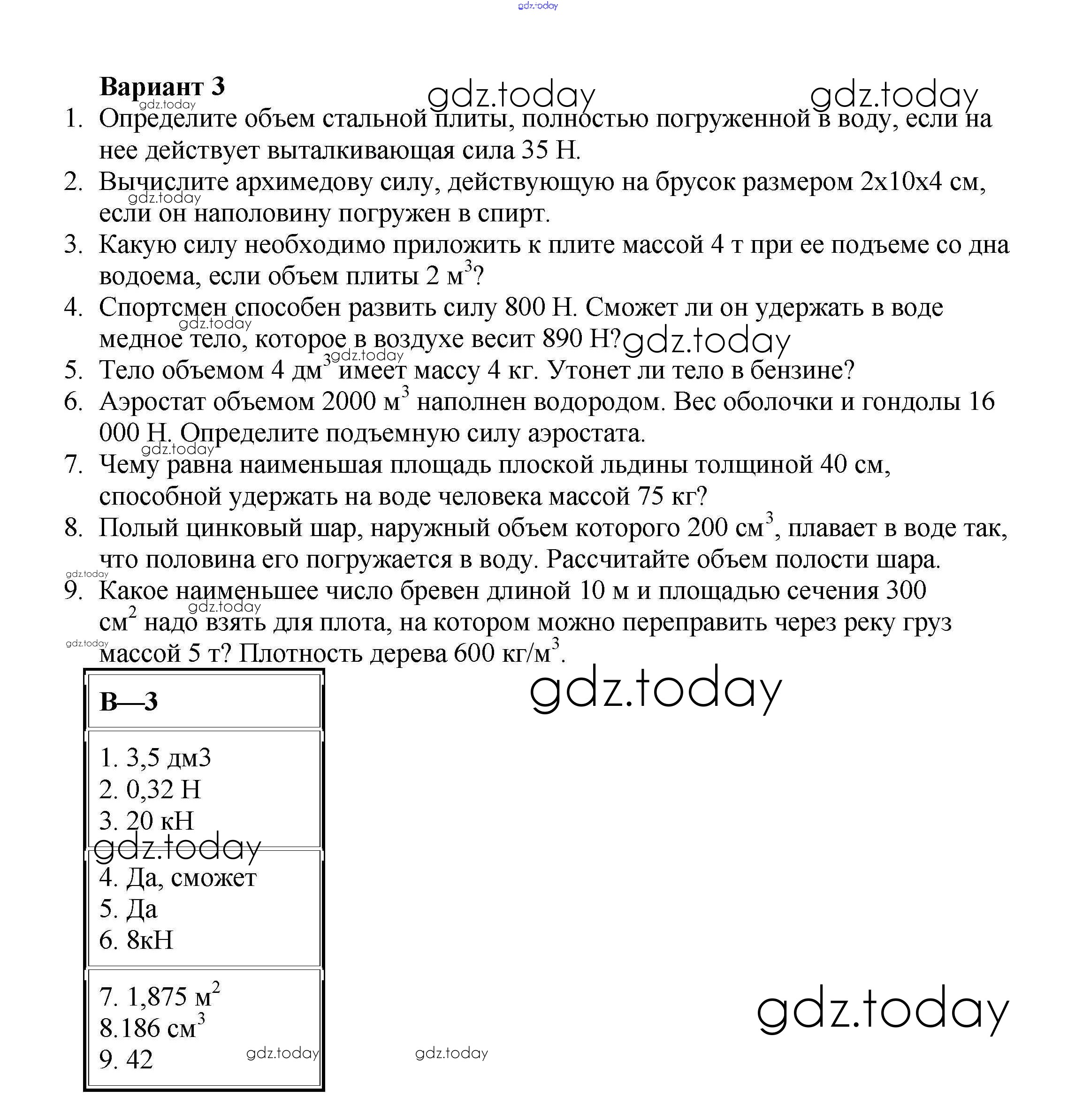 На страницах сайта gdz.today вы найдете учебный и вспомогательный материал, направленный на улучшения знаний школьной программы. ГДЗ - онлайн мир знаний КР №-3. Архимедова сила Решение к контрольным работам Вариант №3 Дидактическим материалам по Физике для 7 класса Марон Дрофа Вертикаль 2019