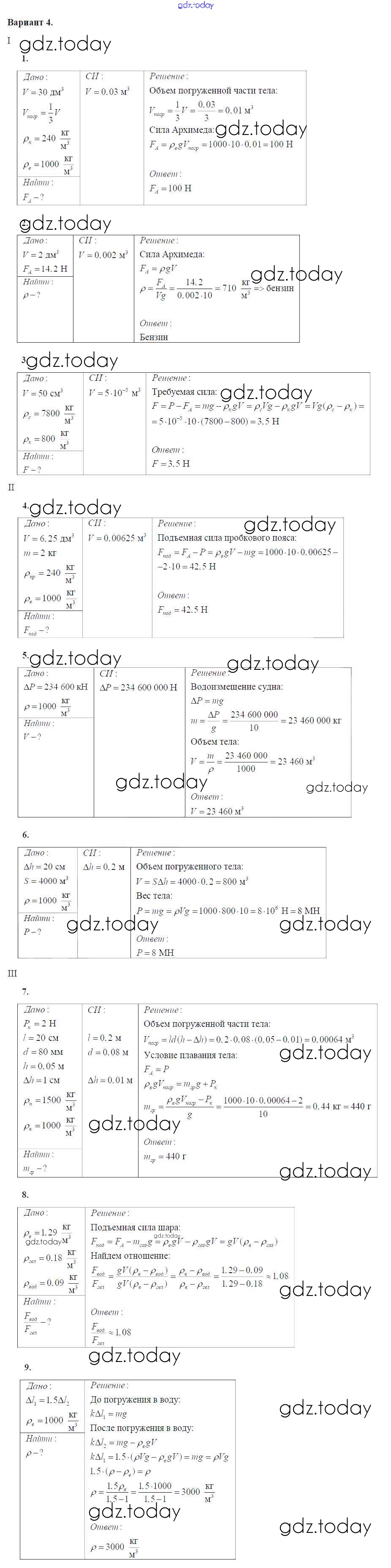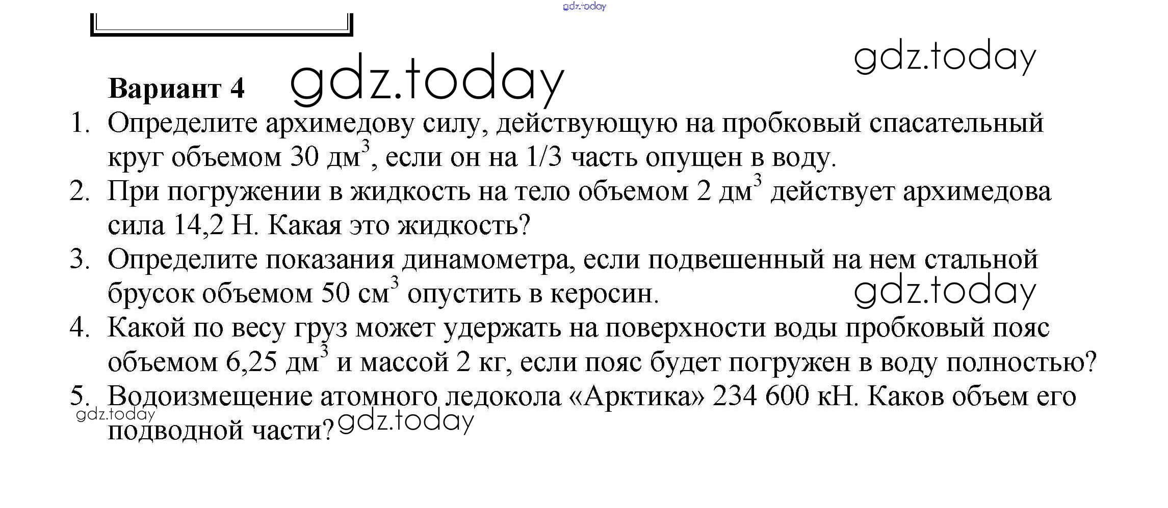 На страницах сайта gdz.today вы найдете учебный и вспомогательный материал, направленный на улучшения знаний школьной программы. ГДЗ - онлайн мир знаний КР №-3. Архимедова сила Решение к контрольным работам Вариант №4 Дидактическим материалам по Физике для 7 класса Марон Дрофа Вертикаль 2019