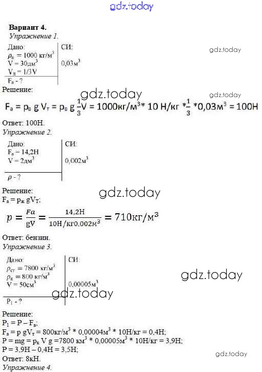 Ответы к КР №-3. Архимедова сила Решение к контрольным работам Вариант №4 Дидактическим материалам по Физике для 7 класса Марон Дрофа Вертикаль 2019