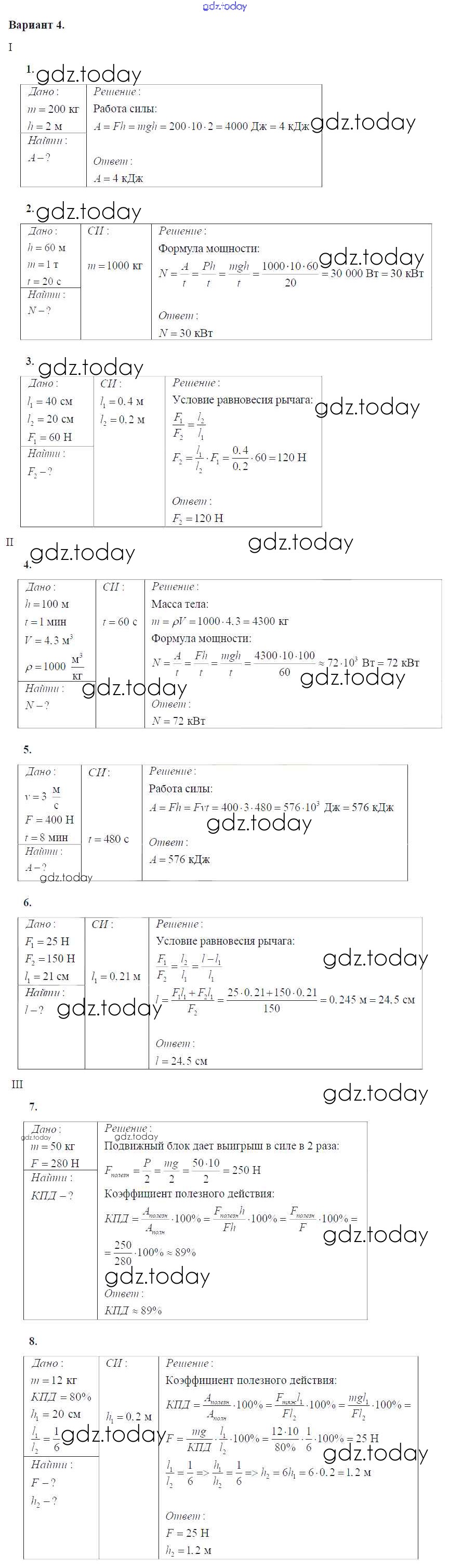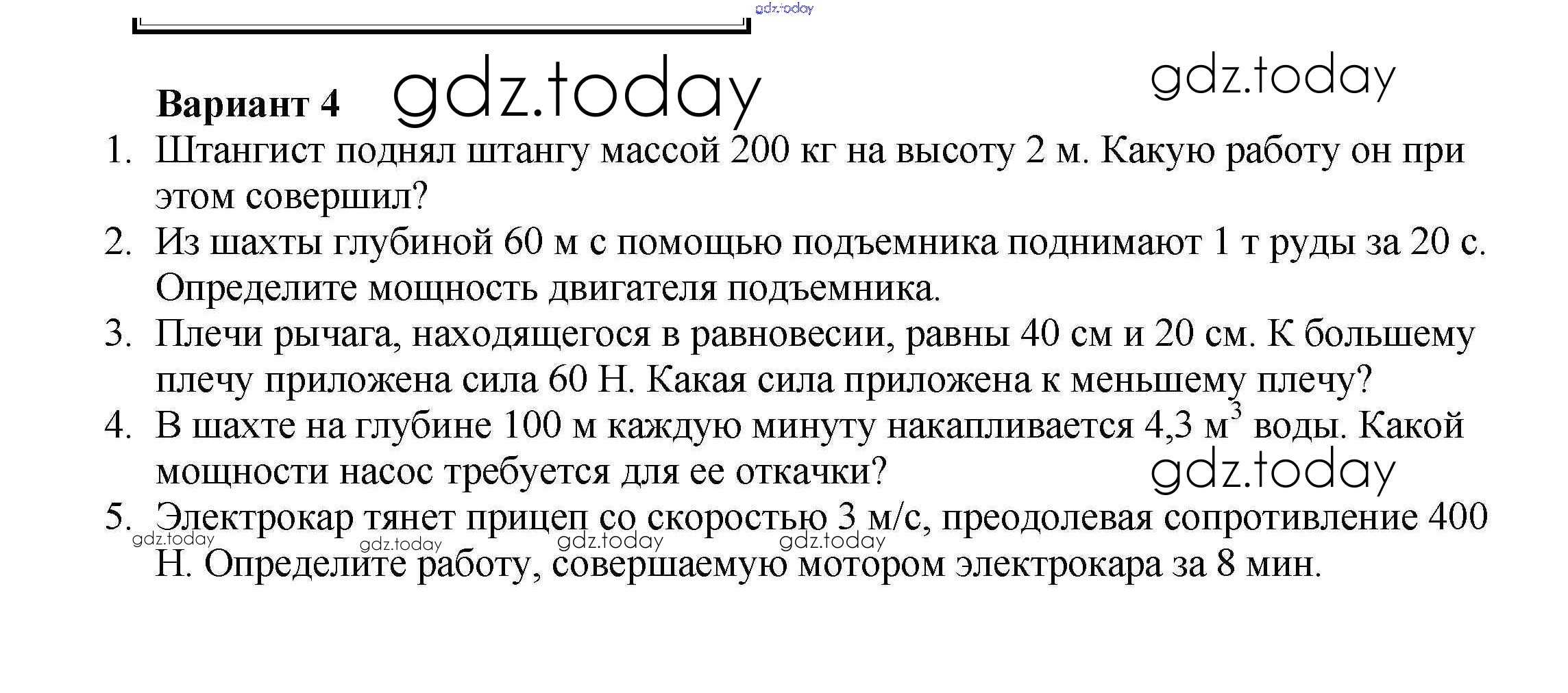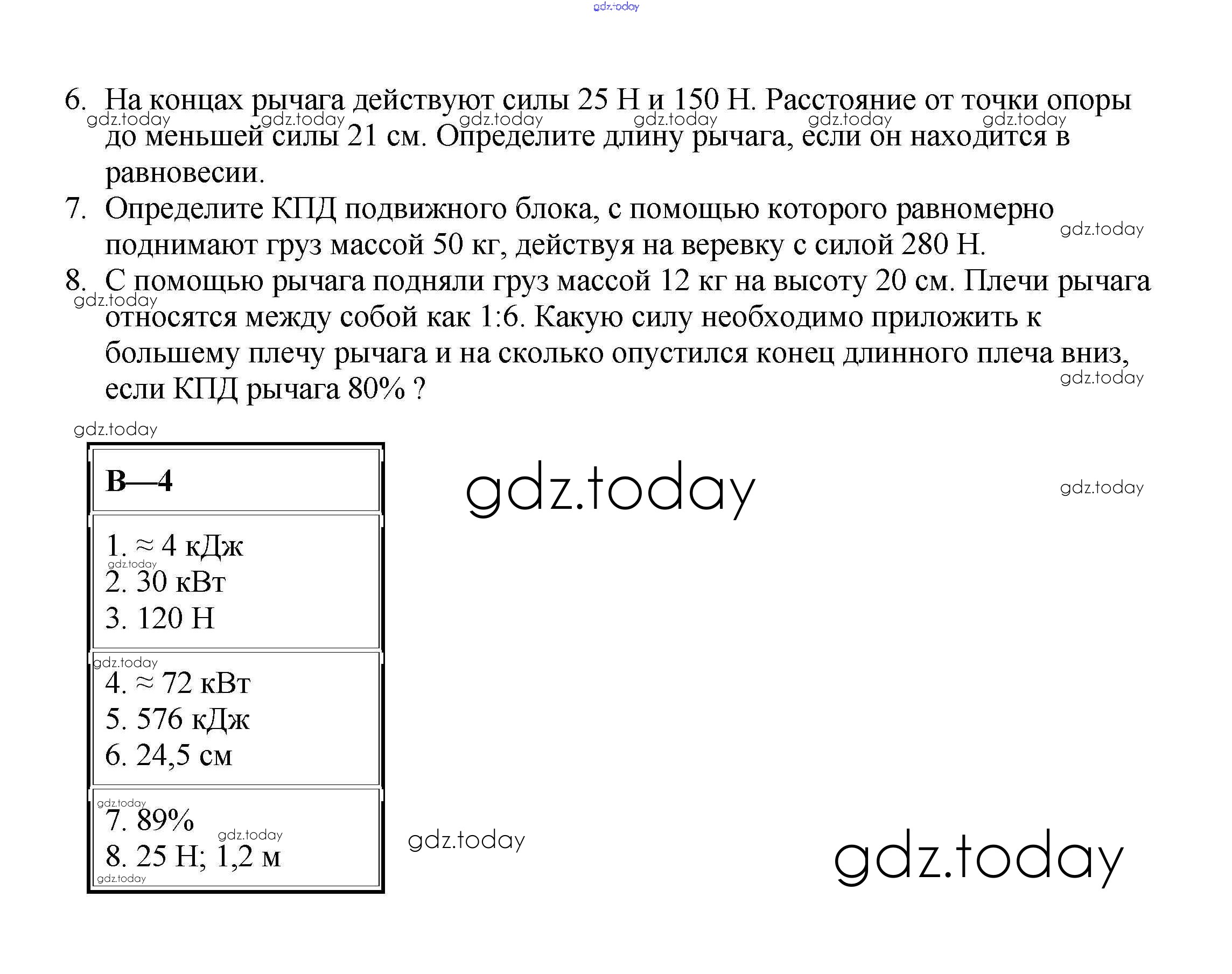 На страницах сайта gdz.today вы найдете учебный и вспомогательный материал, направленный на улучшения знаний школьной программы. ГДЗ - онлайн мир знаний КР №-4. Механическая работа и мощность. Простые механизмы Решение к контрольным работам Вариант №4 Дидактическим материалам по Физике для 7 класса Марон Дрофа Вертикаль 2019