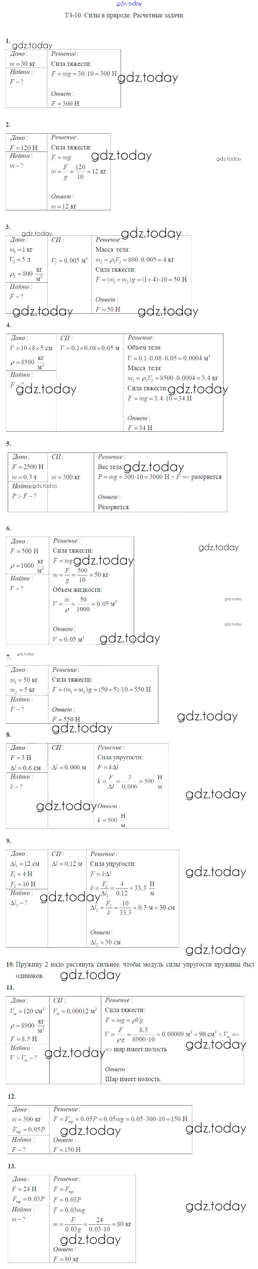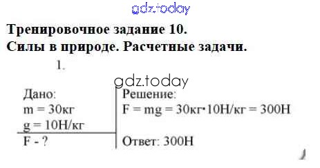 На страницах сайта gdz.today вы найдете учебный и вспомогательный материал, направленный на улучшения знаний школьной программы. ГДЗ - онлайн мир знаний Решение к тренировочным заданияи Задание №10. Силы в природе. Расчетные задачи Дидактическим материалам по Физике для 7 класса Марон Дрофа Вертикаль 2019