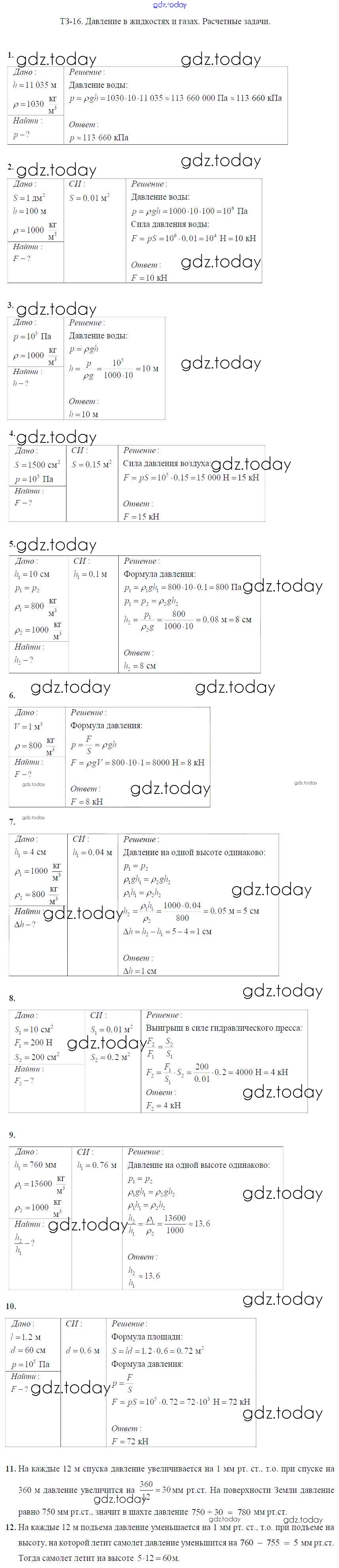 На страницах сайта gdz.today вы найдете учебный и вспомогательный материал, направленный на улучшения знаний школьной программы. ГДЗ - онлайн мир знаний Решение к тренировочным заданияи Задание №16. Давление в жидкостях и газах. Расчетные задачи Дидактическим материалам по Физике для 7 класса Марон Дрофа Вертикаль 2019