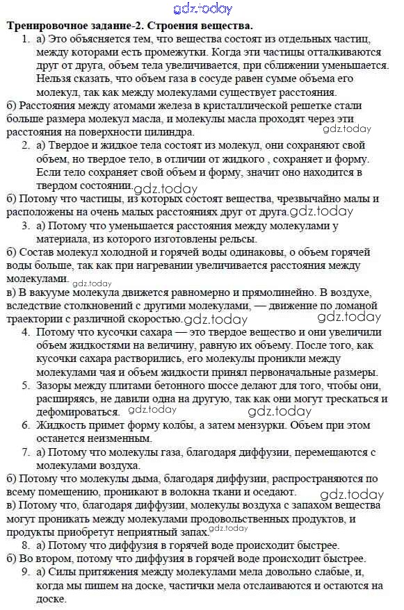 Ответы к Решение к тренировочным заданияи Задание №2. Строение вещества Дидактическим материалам по Физике для 7 класса Марон Дрофа Вертикаль 2019
