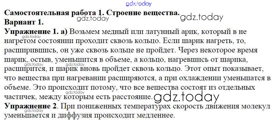 На страницах сайта gdz.today вы найдете учебный и вспомогательный материал, направленный на улучшения знаний школьной программы. ГДЗ - онлайн мир знаний СР №-1. Строение вещества Решение к самостоятельным работам Вариант №1 Дидактическим материалам по Физике для 7 класса Марон Дрофа Вертикаль 2019