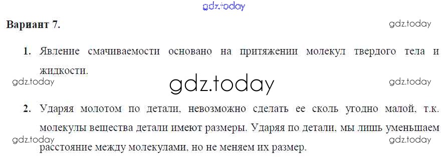 На страницах сайта gdz.today вы найдете учебный и вспомогательный материал, направленный на улучшения знаний школьной программы. ГДЗ - онлайн мир знаний СР №-1. Строение вещества Решение к самостоятельным работам Вариант №7 Дидактическим материалам по Физике для 7 класса Марон Дрофа Вертикаль 2019