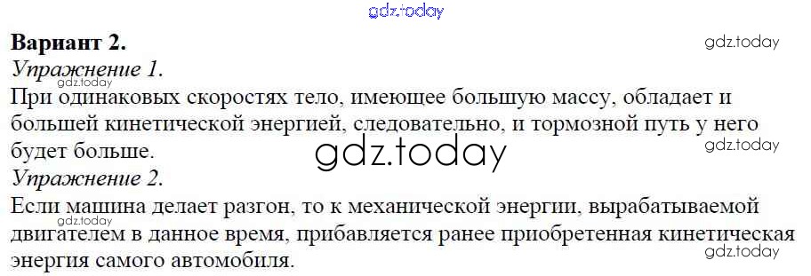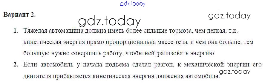 На страницах сайта gdz.today вы найдете учебный и вспомогательный материал, направленный на улучшения знаний школьной программы. ГДЗ - онлайн мир знаний СР №-10. Энергия Решение к самостоятельным работам Вариант №2 Дидактическим материалам по Физике для 7 класса Марон Дрофа Вертикаль 2019