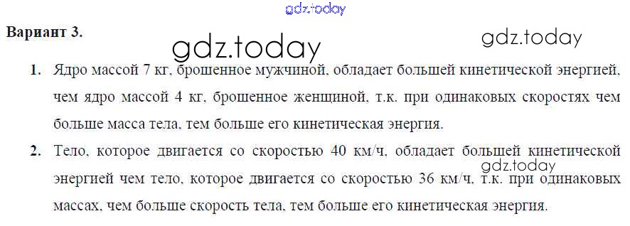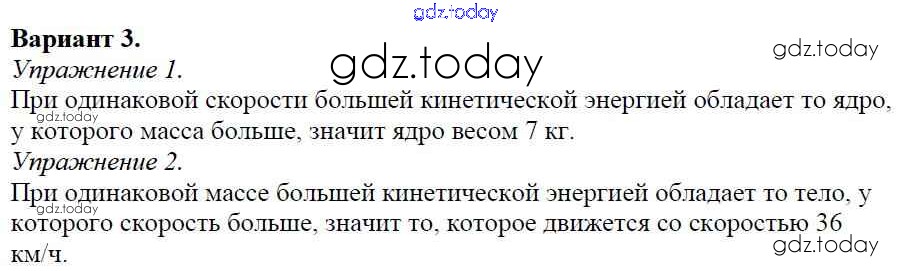 На страницах сайта gdz.today вы найдете учебный и вспомогательный материал, направленный на улучшения знаний школьной программы. ГДЗ - онлайн мир знаний СР №-10. Энергия Решение к самостоятельным работам Вариант №3 Дидактическим материалам по Физике для 7 класса Марон Дрофа Вертикаль 2019
