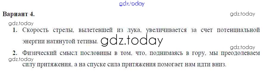 На страницах сайта gdz.today вы найдете учебный и вспомогательный материал, направленный на улучшения знаний школьной программы. ГДЗ - онлайн мир знаний СР №-10. Энергия Решение к самостоятельным работам Вариант №4 Дидактическим материалам по Физике для 7 класса Марон Дрофа Вертикаль 2019