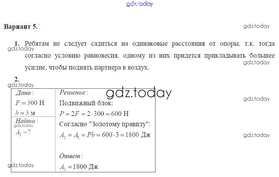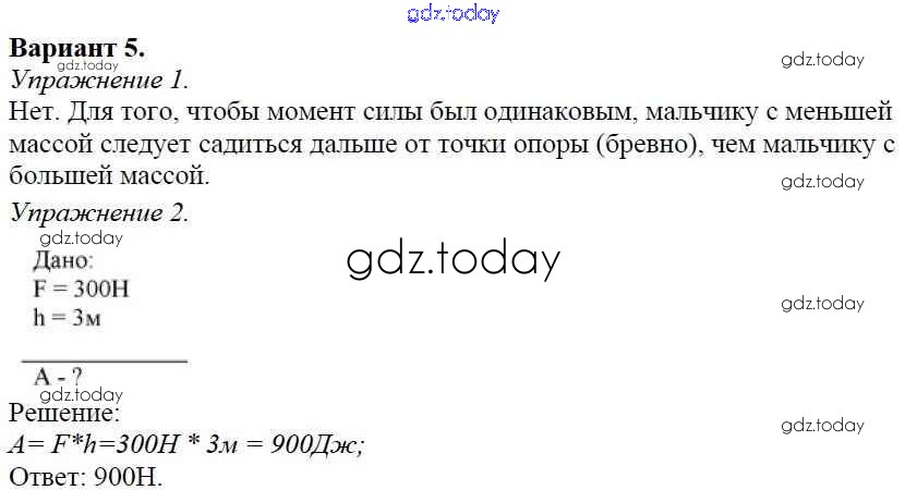 На страницах сайта gdz.today вы найдете учебный и вспомогательный материал, направленный на улучшения знаний школьной программы. ГДЗ - онлайн мир знаний СР №-11. Простые механизмы. КПД простых механизмов Решение к самостоятельным работам Вариант №5 Дидактическим материалам по Физике для 7 класса Марон Дрофа Вертикаль 2019