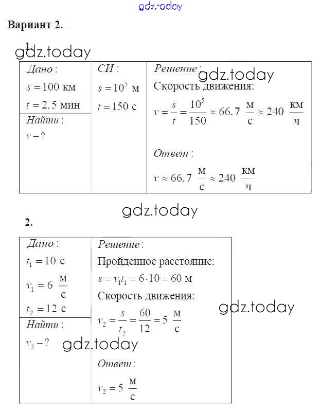 На страницах сайта gdz.today вы найдете учебный и вспомогательный материал, направленный на улучшения знаний школьной программы. ГДЗ - онлайн мир знаний СР №-2. Механическое движение Решение к самостоятельным работам Вариант №2 Дидактическим материалам по Физике для 7 класса Марон Дрофа Вертикаль 2019