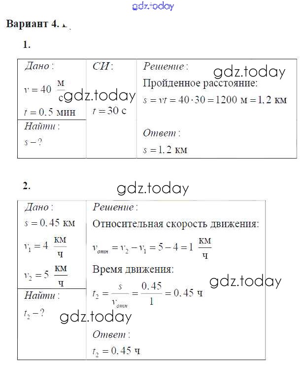 На страницах сайта gdz.today вы найдете учебный и вспомогательный материал, направленный на улучшения знаний школьной программы. ГДЗ - онлайн мир знаний СР №-2. Механическое движение Решение к самостоятельным работам Вариант №4 Дидактическим материалам по Физике для 7 класса Марон Дрофа Вертикаль 2019