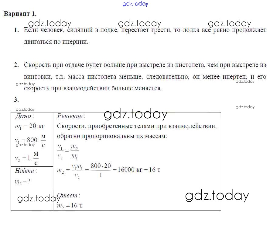 На страницах сайта gdz.today вы найдете учебный и вспомогательный материал, направленный на улучшения знаний школьной программы. ГДЗ - онлайн мир знаний СР №-3. Инерция. Взаимодействие тел. Масса тела Решение к самостоятельным работам Вариант №1 Дидактическим материалам по Физике для 7 класса Марон Дрофа Вертикаль 2019
