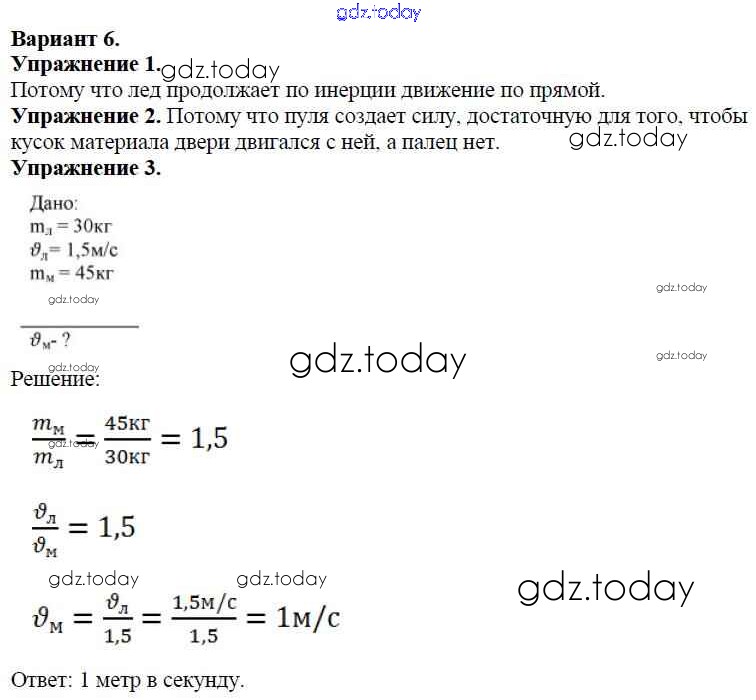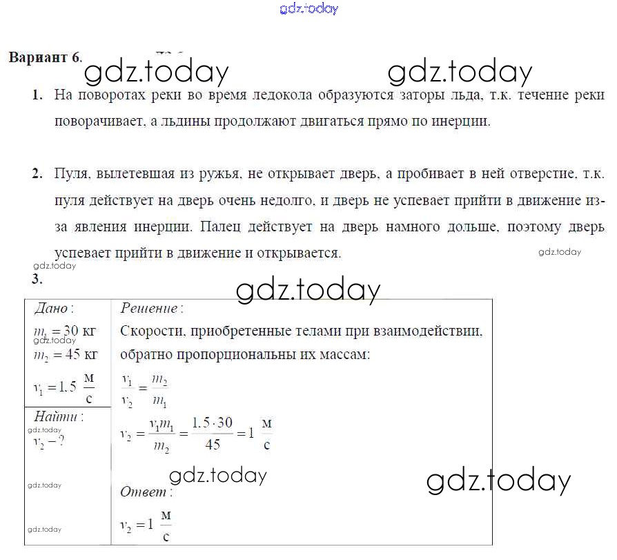 На страницах сайта gdz.today вы найдете учебный и вспомогательный материал, направленный на улучшения знаний школьной программы. ГДЗ - онлайн мир знаний СР №-3. Инерция. Взаимодействие тел. Масса тела Решение к самостоятельным работам Вариант №6 Дидактическим материалам по Физике для 7 класса Марон Дрофа Вертикаль 2019