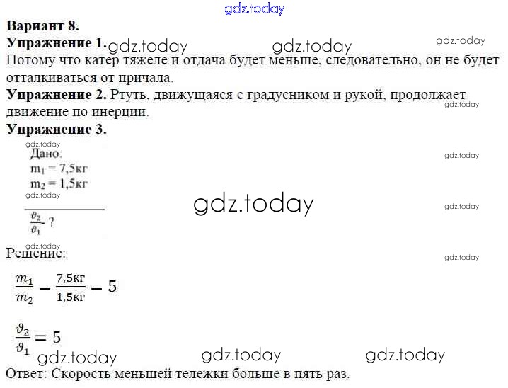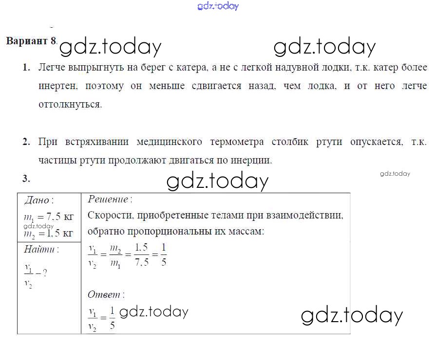 На страницах сайта gdz.today вы найдете учебный и вспомогательный материал, направленный на улучшения знаний школьной программы. ГДЗ - онлайн мир знаний СР №-3. Инерция. Взаимодействие тел. Масса тела Решение к самостоятельным работам Вариант №8 Дидактическим материалам по Физике для 7 класса Марон Дрофа Вертикаль 2019