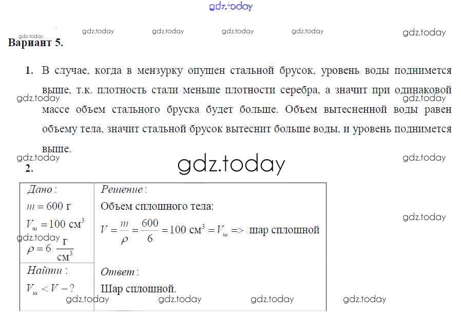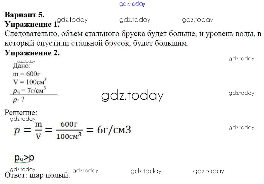 На страницах сайта gdz.today вы найдете учебный и вспомогательный материал, направленный на улучшения знаний школьной программы. ГДЗ - онлайн мир знаний СР №-4. Плотность вещества Решение к самостоятельным работам Вариант №5 Дидактическим материалам по Физике для 7 класса Марон Дрофа Вертикаль 2019