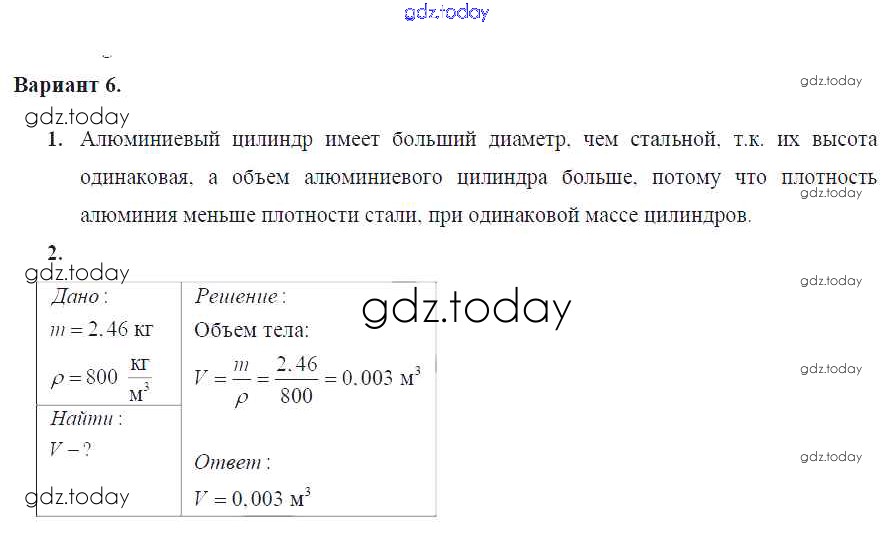 На страницах сайта gdz.today вы найдете учебный и вспомогательный материал, направленный на улучшения знаний школьной программы. ГДЗ - онлайн мир знаний СР №-4. Плотность вещества Решение к самостоятельным работам Вариант №6 Дидактическим материалам по Физике для 7 класса Марон Дрофа Вертикаль 2019