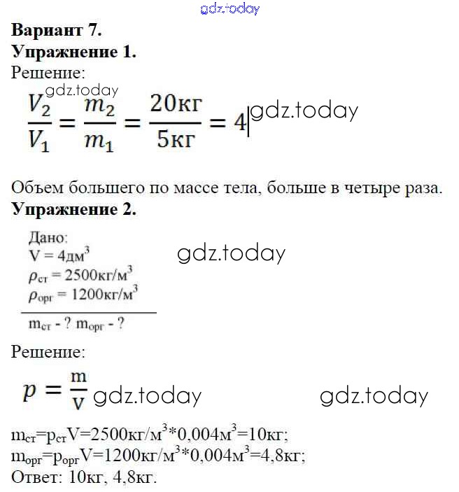 Ответы к СР №-4. Плотность вещества Решение к самостоятельным работам Вариант №7 Дидактическим материалам по Физике для 7 класса Марон Дрофа Вертикаль 2019
