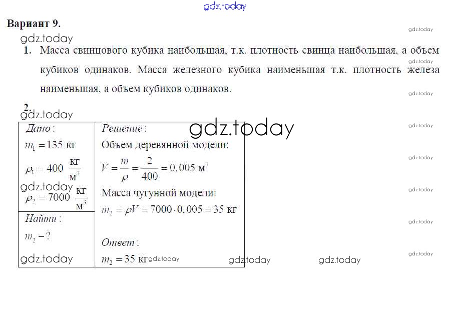 На страницах сайта gdz.today вы найдете учебный и вспомогательный материал, направленный на улучшения знаний школьной программы. ГДЗ - онлайн мир знаний СР №-4. Плотность вещества Решение к самостоятельным работам Вариант №9 Дидактическим материалам по Физике для 7 класса Марон Дрофа Вертикаль 2019