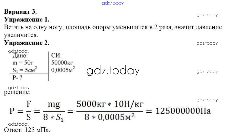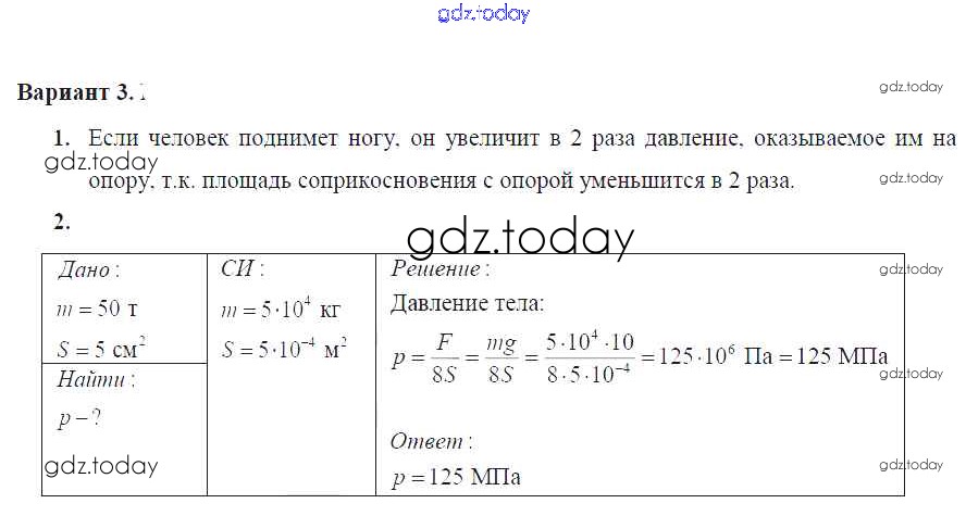 На страницах сайта gdz.today вы найдете учебный и вспомогательный материал, направленный на улучшения знаний школьной программы. ГДЗ - онлайн мир знаний СР №-6. Давление твердых тел Решение к самостоятельным работам Вариант №3 Дидактическим материалам по Физике для 7 класса Марон Дрофа Вертикаль 2019