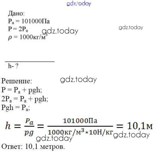 Ответы к СР №-7. Давление в жидкостях и газах Решение к самостоятельным работам Вариант №10 Дидактическим материалам по Физике для 7 класса Марон Дрофа Вертикаль 2019