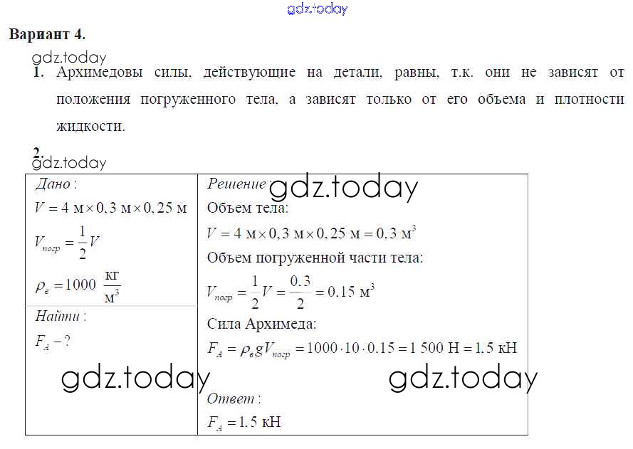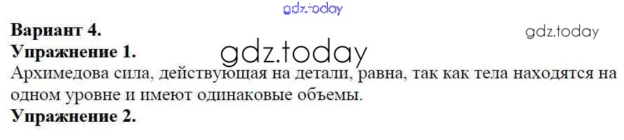 На страницах сайта gdz.today вы найдете учебный и вспомогательный материал, направленный на улучшения знаний школьной программы. ГДЗ - онлайн мир знаний СР №-8. Архимедова сила. Плавание тел Решение к самостоятельным работам Вариант №4 Дидактическим материалам по Физике для 7 класса Марон Дрофа Вертикаль 2019