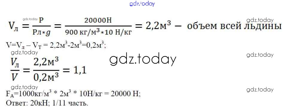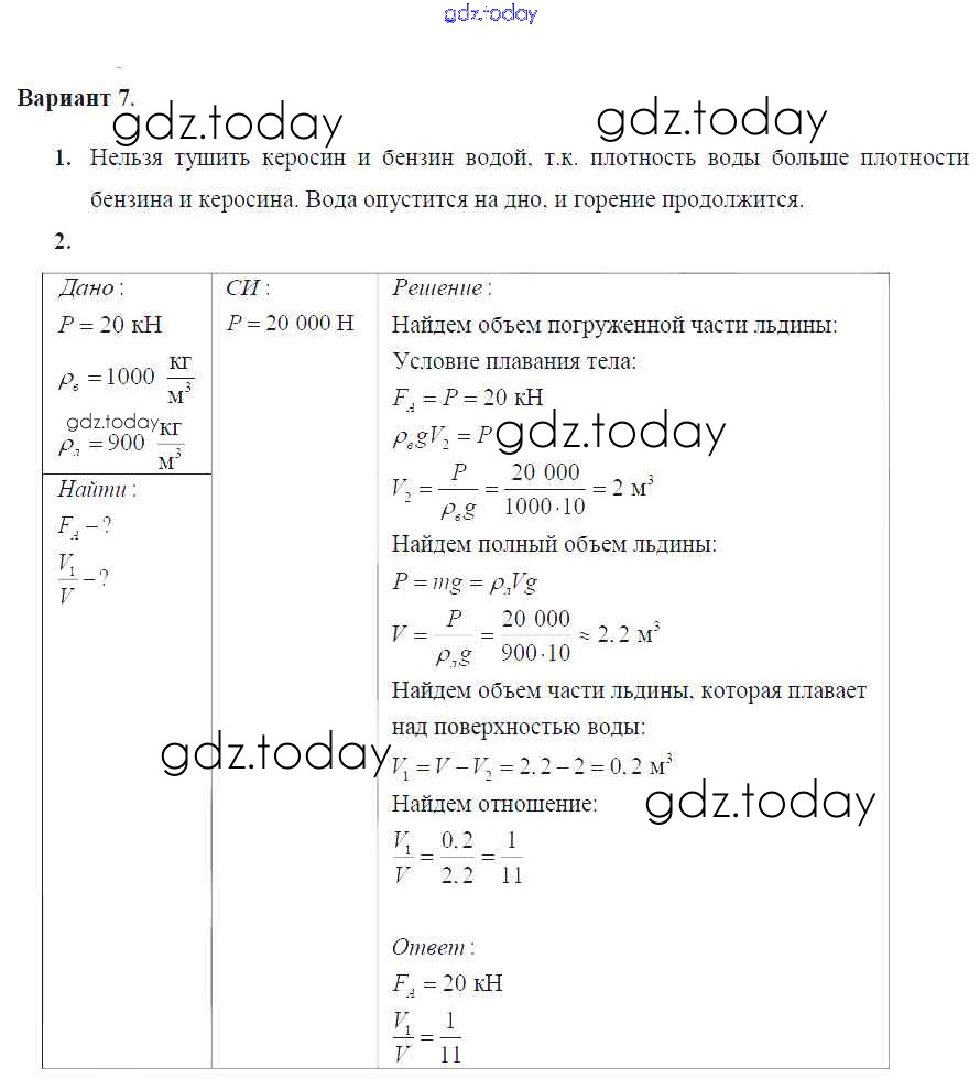 Ответы к СР №-8. Архимедова сила. Плавание тел Решение к самостоятельным работам Вариант №7 Дидактическим материалам по Физике для 7 класса Марон Дрофа Вертикаль 2019