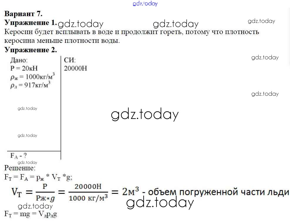 На страницах сайта gdz.today вы найдете учебный и вспомогательный материал, направленный на улучшения знаний школьной программы. ГДЗ - онлайн мир знаний СР №-8. Архимедова сила. Плавание тел Решение к самостоятельным работам Вариант №7 Дидактическим материалам по Физике для 7 класса Марон Дрофа Вертикаль 2019