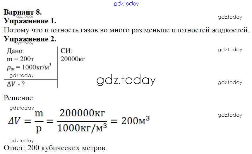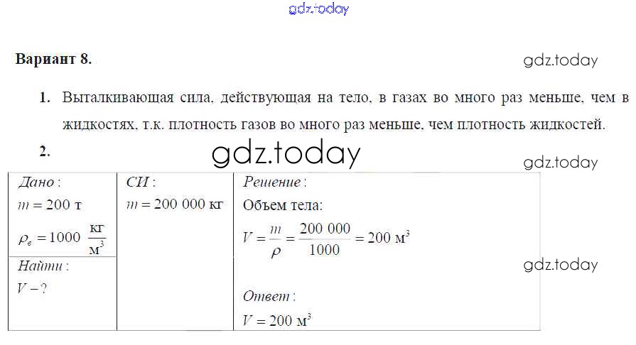 Ответы к СР №-8. Архимедова сила. Плавание тел Решение к самостоятельным работам Вариант №8 Дидактическим материалам по Физике для 7 класса Марон Дрофа Вертикаль 2019